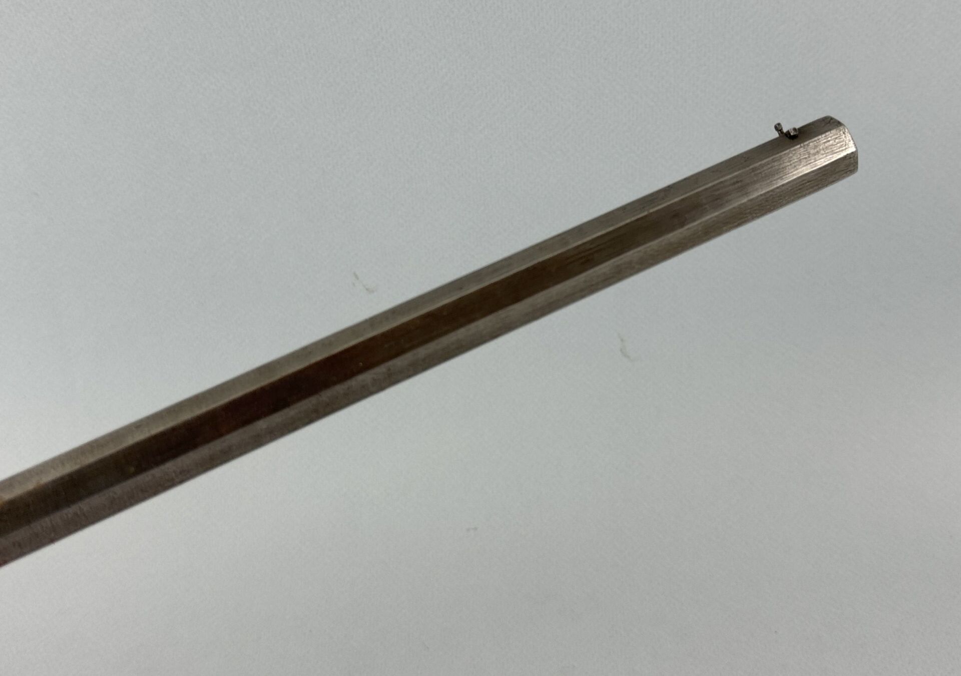 Carabine de jardin système Flobert, calibre 9 mm Flobert, culasse basculante présentant la particularité de s’armer à condition d’effacer une sureté sur la crête du chien. , mécanisme fonctionnel. Canon octogonal lisse miroir à nettoyer. Monture fer, arme polie blanc, crosse anglaise quadrillée, pontet à volutes, hausse tir à balle. Le fût est sculpté de motifs végétaux.