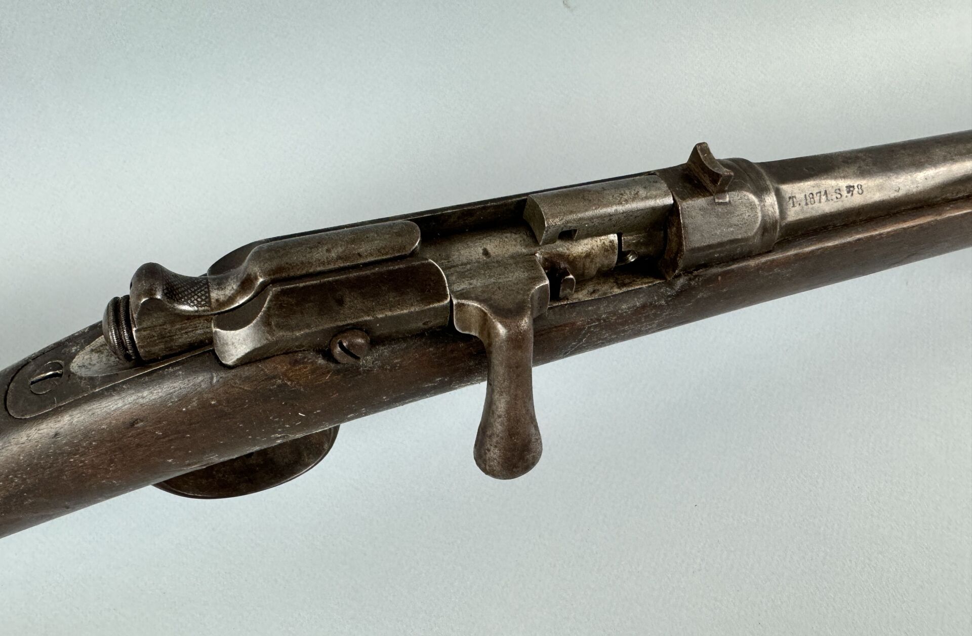 173 RÉSULTAT: 110 € ESTIMATION: 60 / 80 € Mousqueton Gras, modèle 1974 transformé chasse en calibre 24, monture raccourcie à mi canon, manque grain d’orge, mécanisme fonctionnel. Etat 2- Arme de Catégorie D