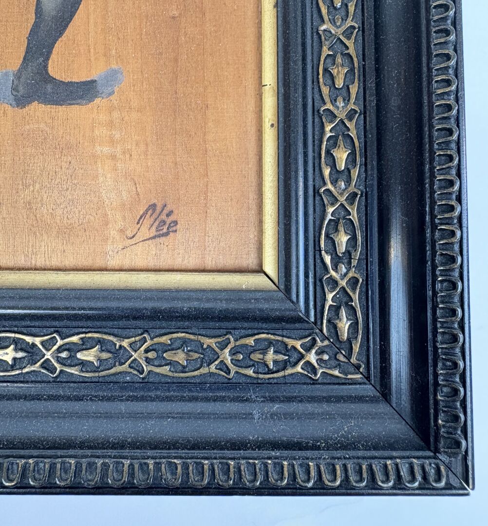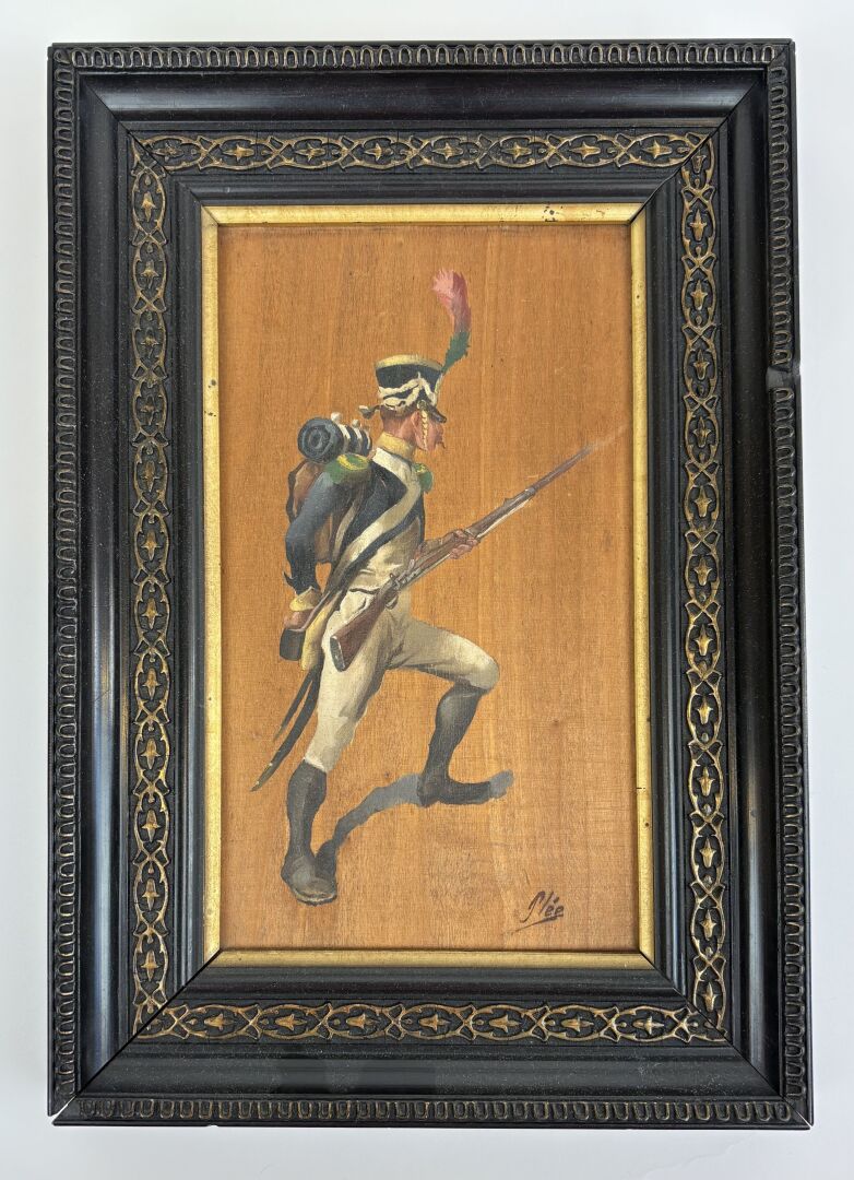 3 ESTIMATION: 30 / 50 € Plée (XIX°) Soldat chargeant Huile sur bois, signée en bas à droite 22 x 12.5 cm