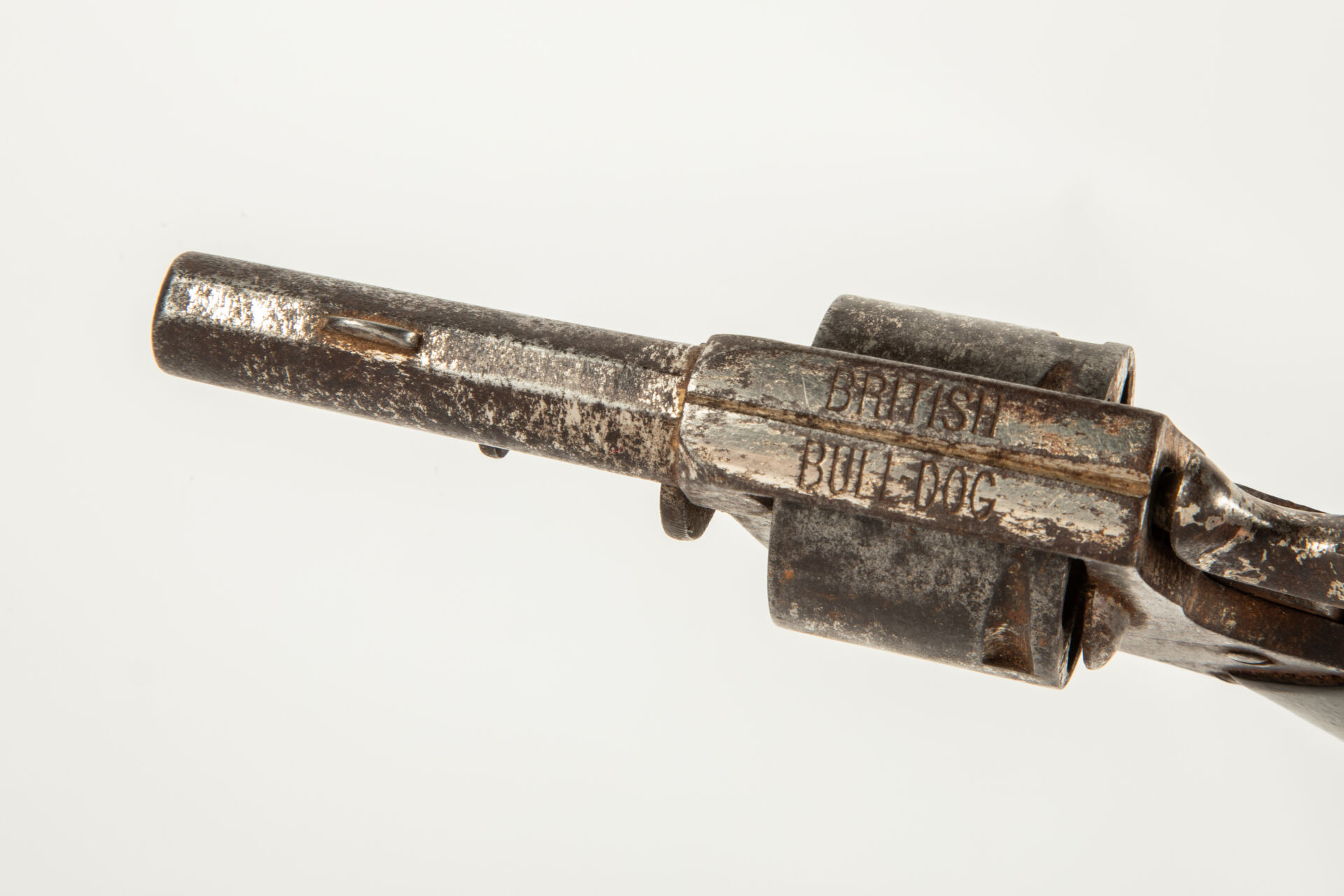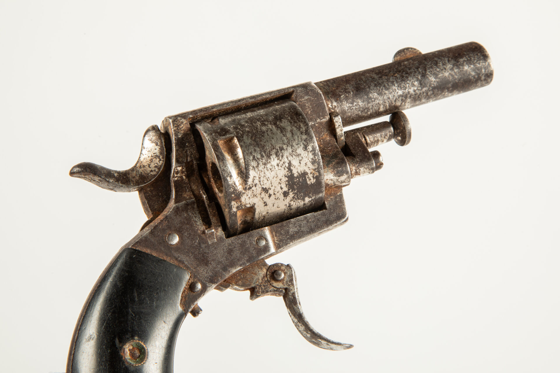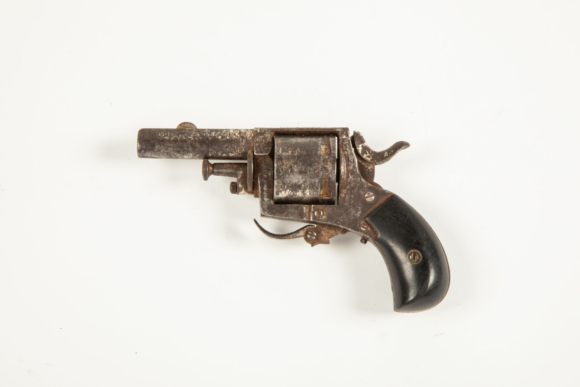 180 ESTIMATION: 40 / 60 € Révolver belge type British Bulldog, calibre 320, traces de nickelage, plaquettes en ébène lisse, chien bloqué à l’armée. Etat 2 Arme de Catégorie D