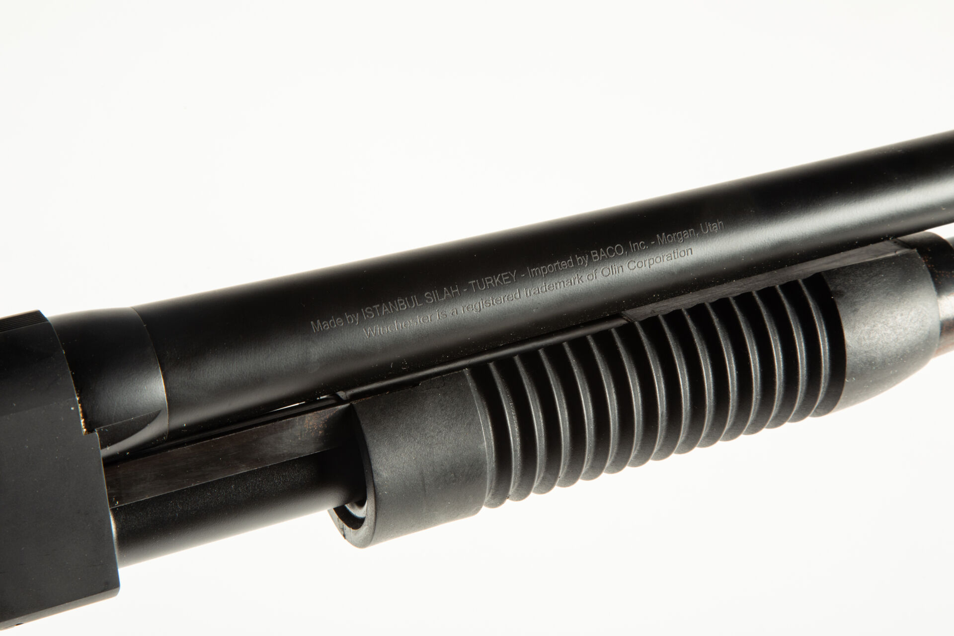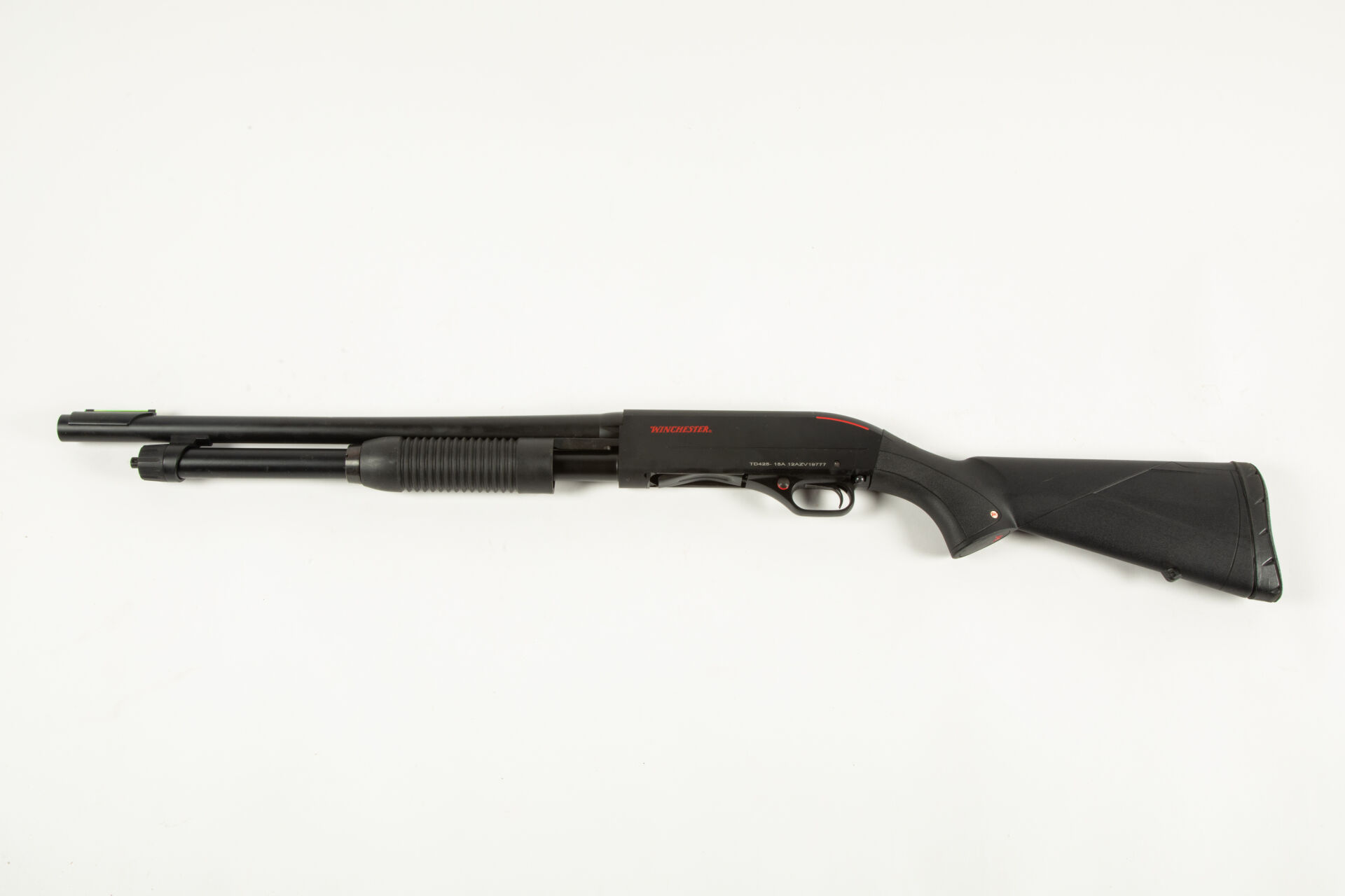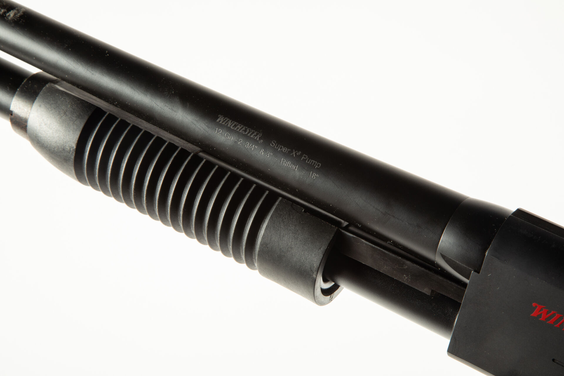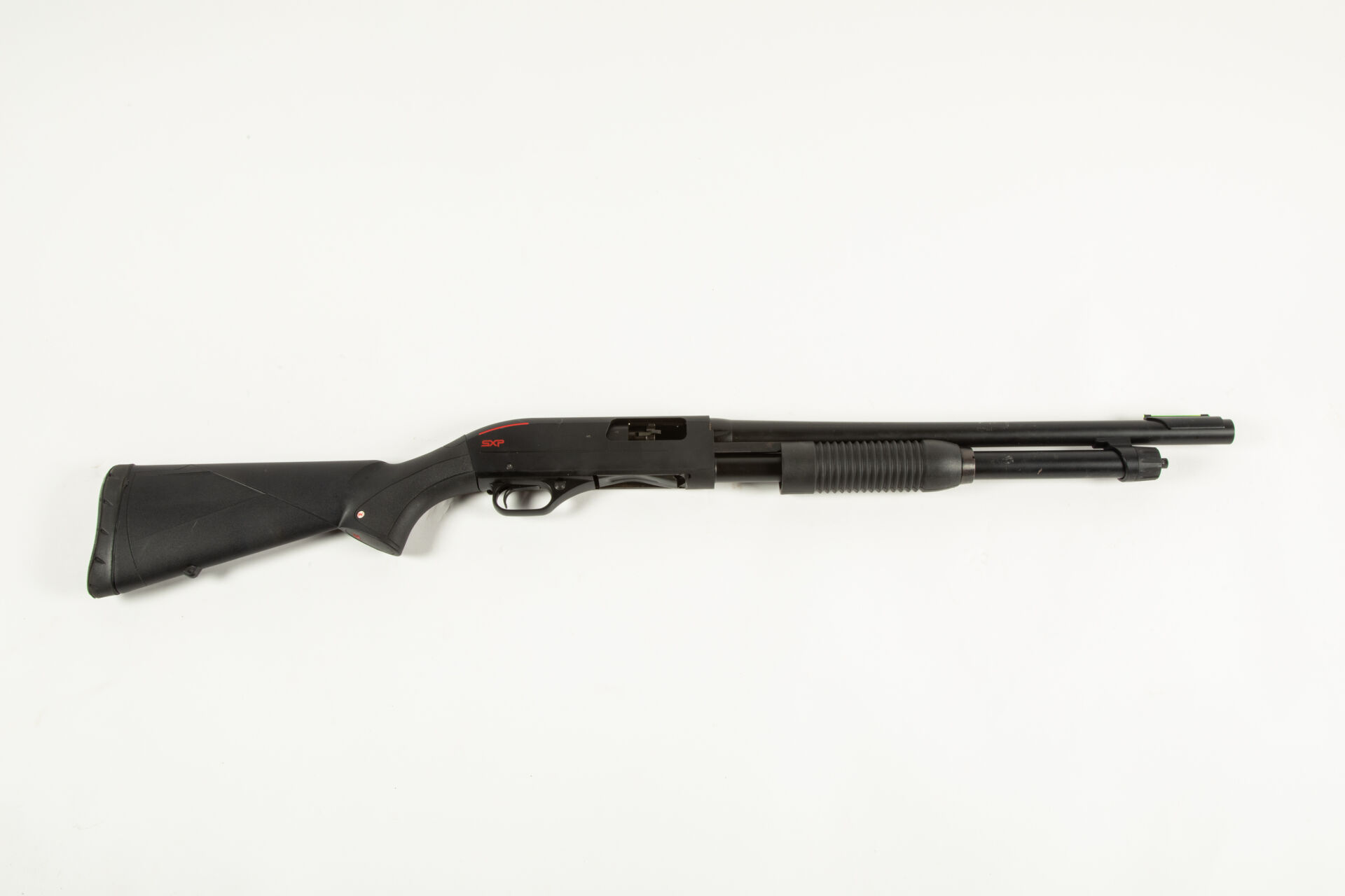 Fusil à pompe Winchester Super X Pump (SXP), canon de 480 mm rayé, monture polymère, mécanisme fonctionnel.