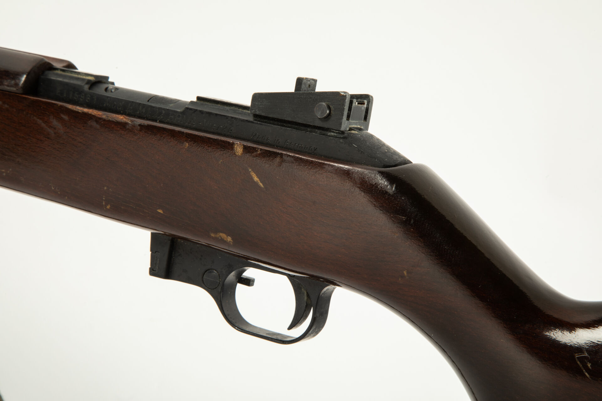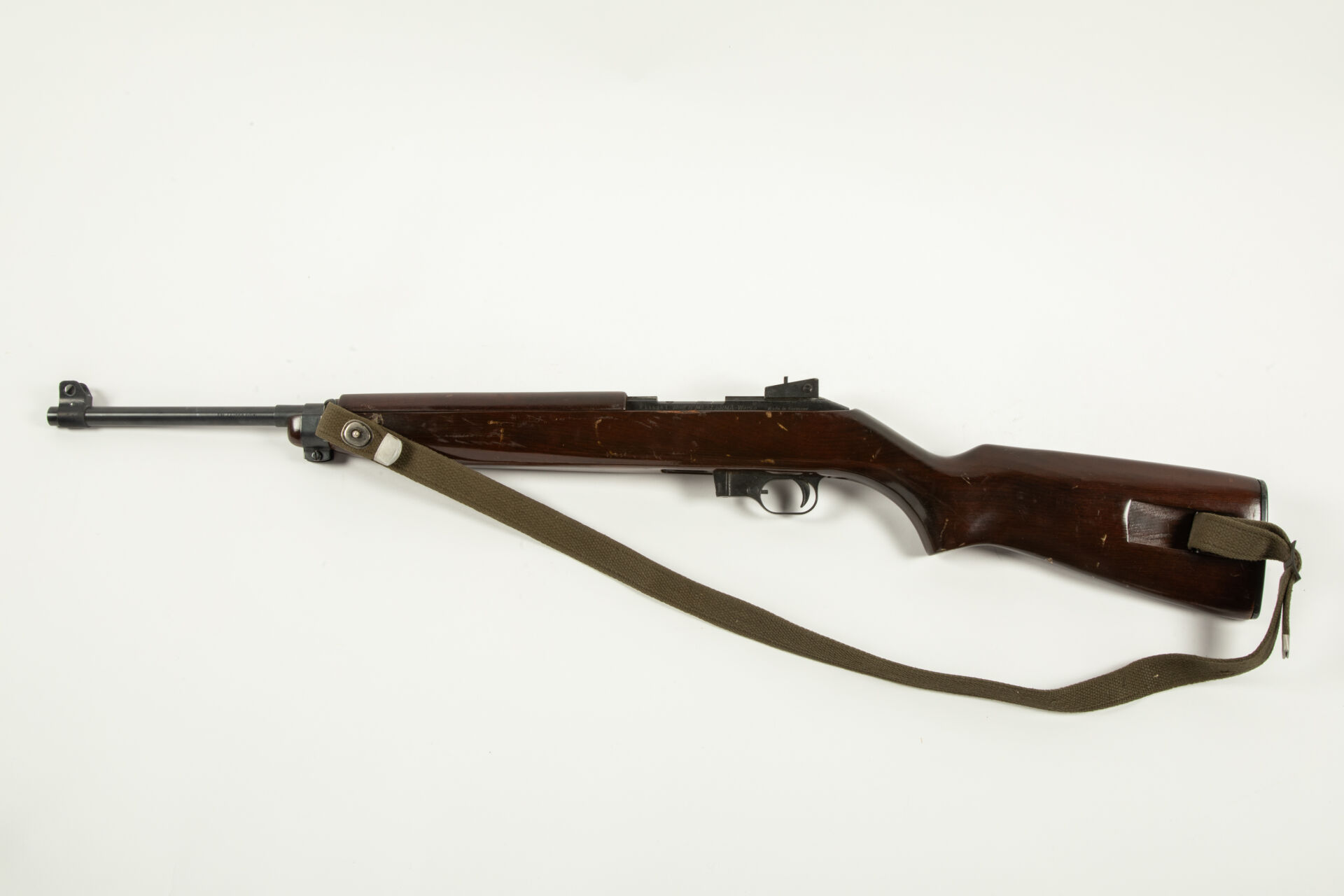 Carabine semi-automatique Erma modèle M1, calibre 22 LR avec sa bretelle, manque chargeur, mécanisme fonctionnel à vide.