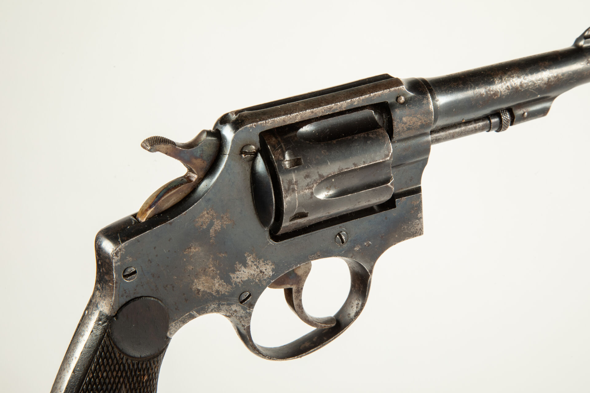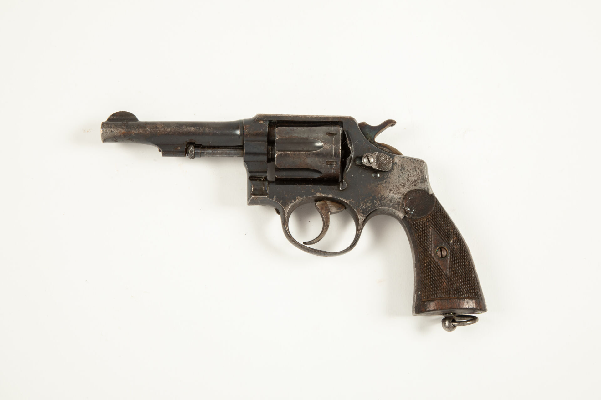 Revolver 1892 espagnol, copie Smith & Wesson, fabrication Trocaola Arizmendi à Eibar, calibre 8 mm 1892, bronzage partiellement effacé, quelques piqures, mécanisme fonctionnel.