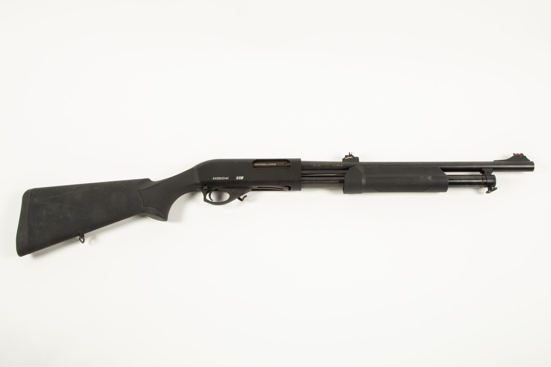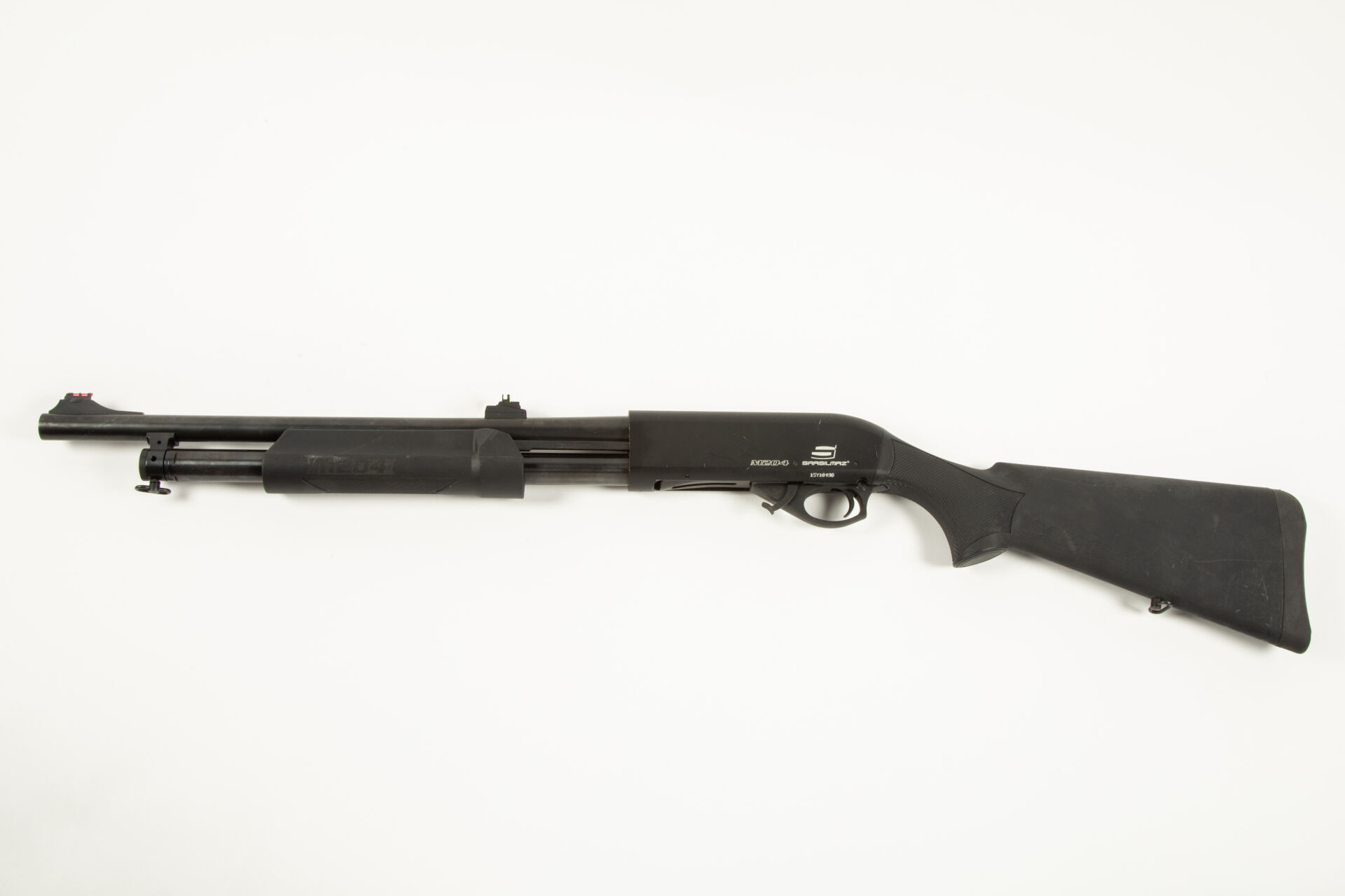 288 ESTIMATION: 80 / 120 € Fusil à pompe Sarsilmaz, calibre 12/76, modèle M204, canon court lisse de 470 mm de long, monture polymère. Mécanisme fonctionnel Arme n°15Y16490 Etat 1 Arme de Catégorie C