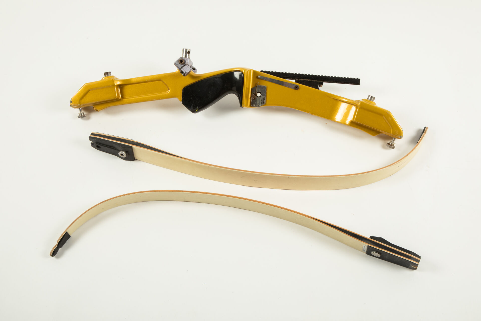 37 ESTIMATION: 20 / 30 € Arc composite démontable yamaha, cadre en aluminium anodisé doré, système de visée, arc pour droitier, manque corde Etat 1- Lot vendu en judiciaire Frais de vente réduits à 14,28% TTC