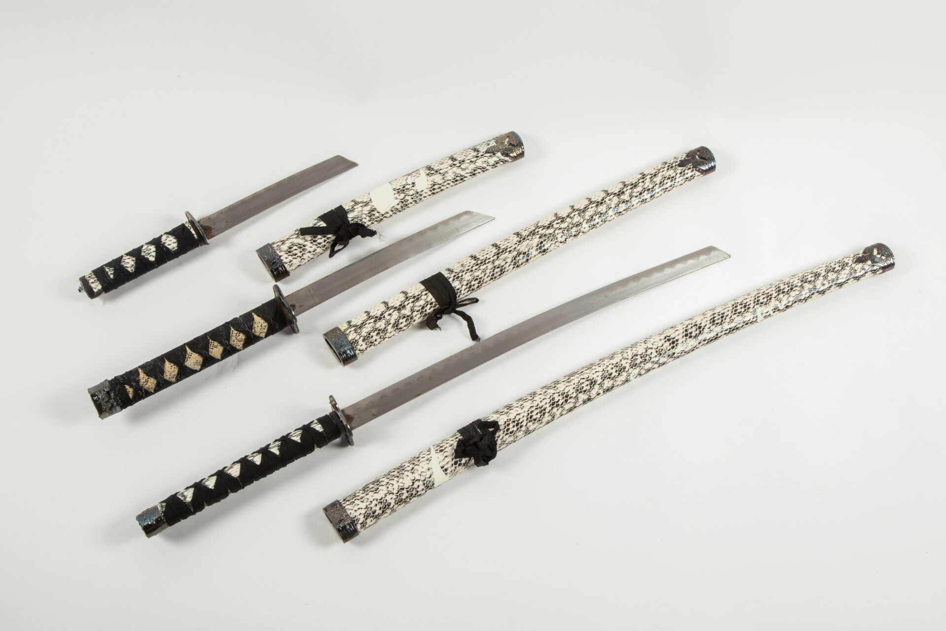 Lot de trois armes blanches d’inspiration librement japosaises (Katana wakisachi Tanto)