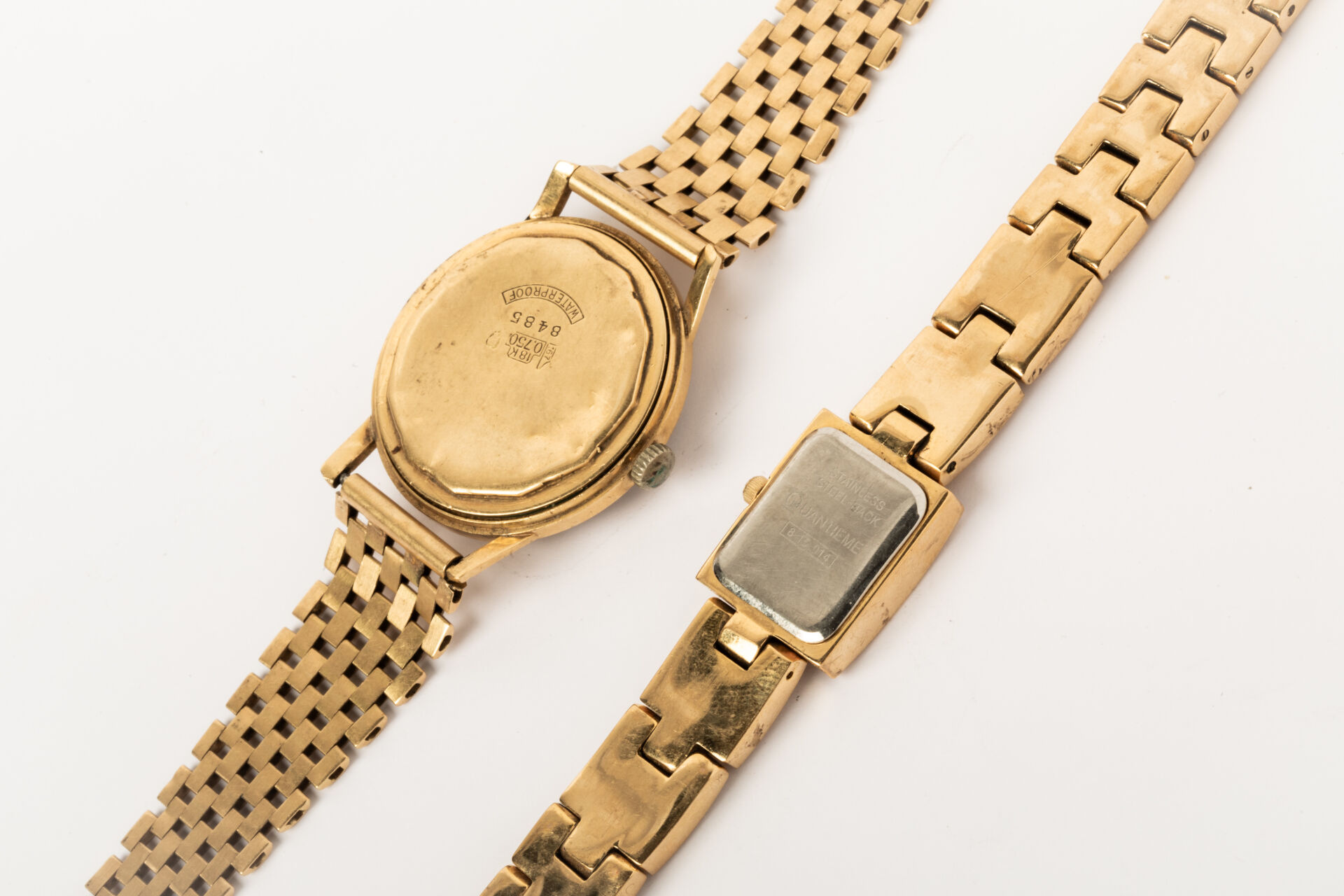 Deux montres soit une de dame fantaisie et une d’homme tout en or 750 millièmes (18k).