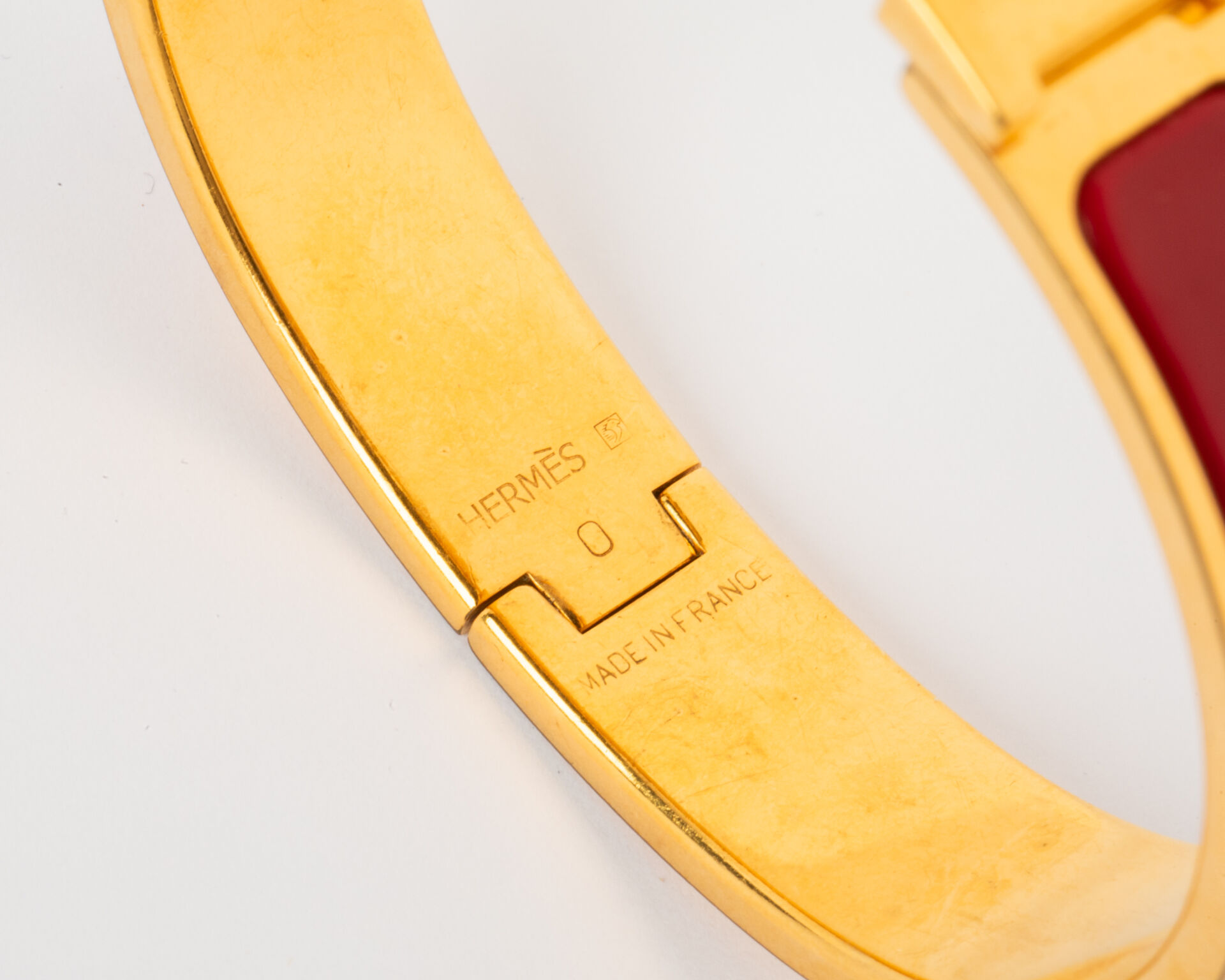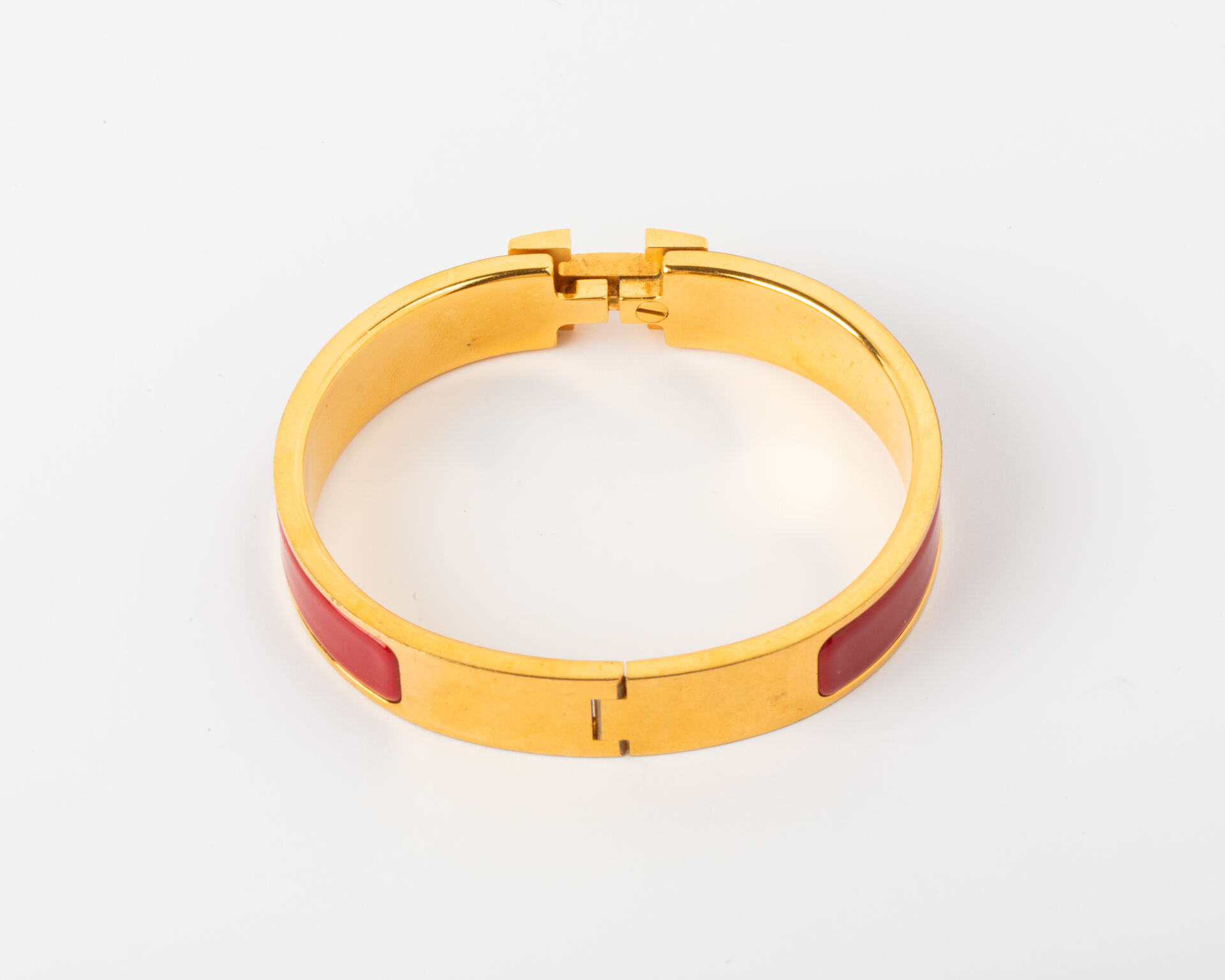 Modèle Clic Clac – Bracelet en métal doré et émail rouge. Petit modèle.