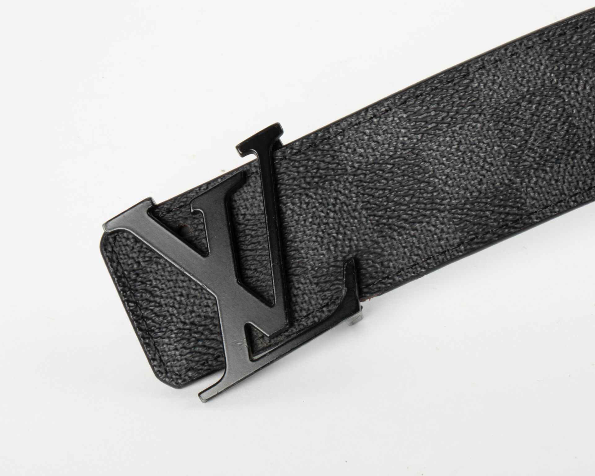 Ceinture réversible en cuir noir et toile damier anthracite, boucle en métal noir