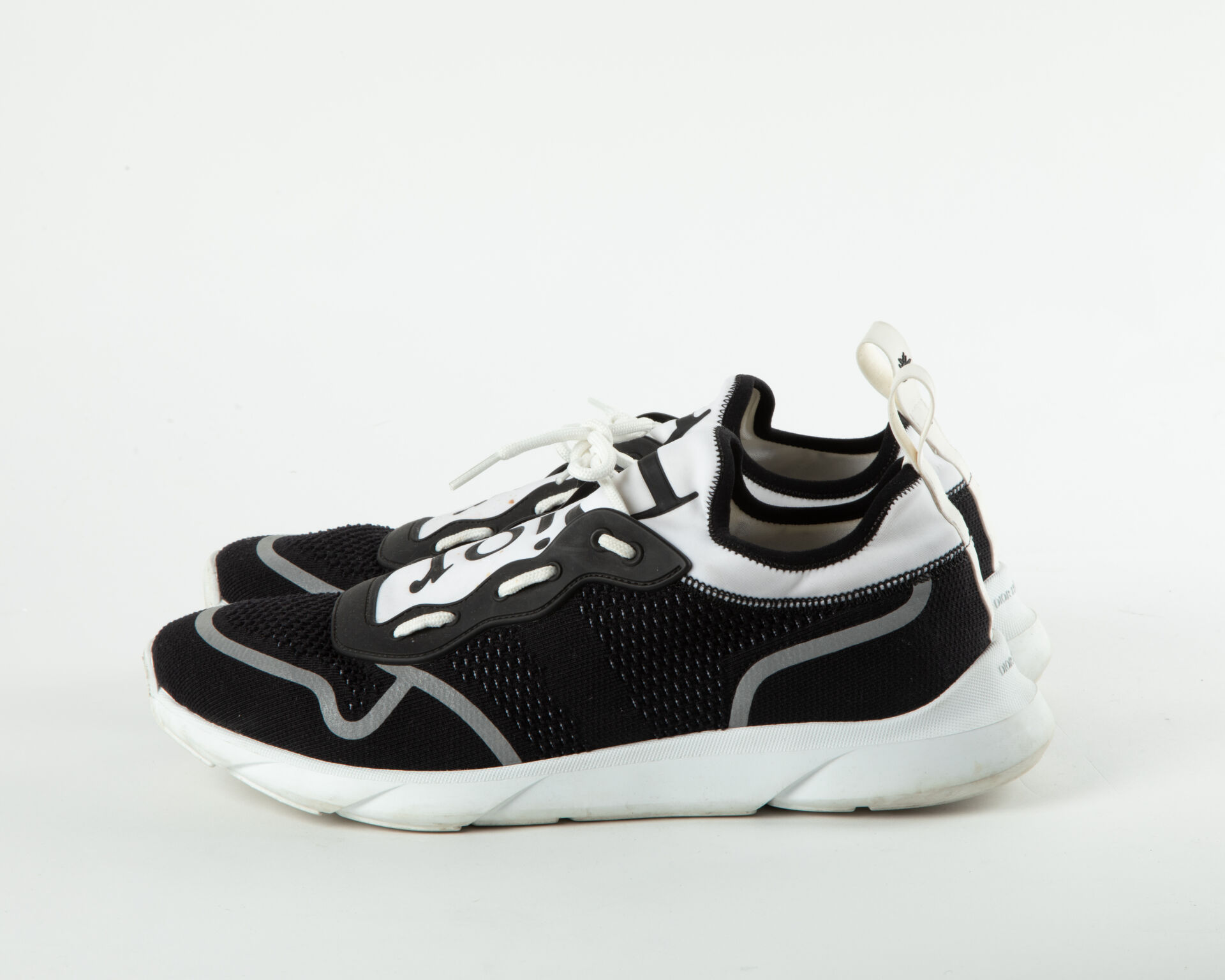 173 ESTIMATION: 80 / 120 € CHRISTIAN DIOR Modèle B21 Neo – Paire de baskets en tissus noir et blanc Tâches Pointure : 45