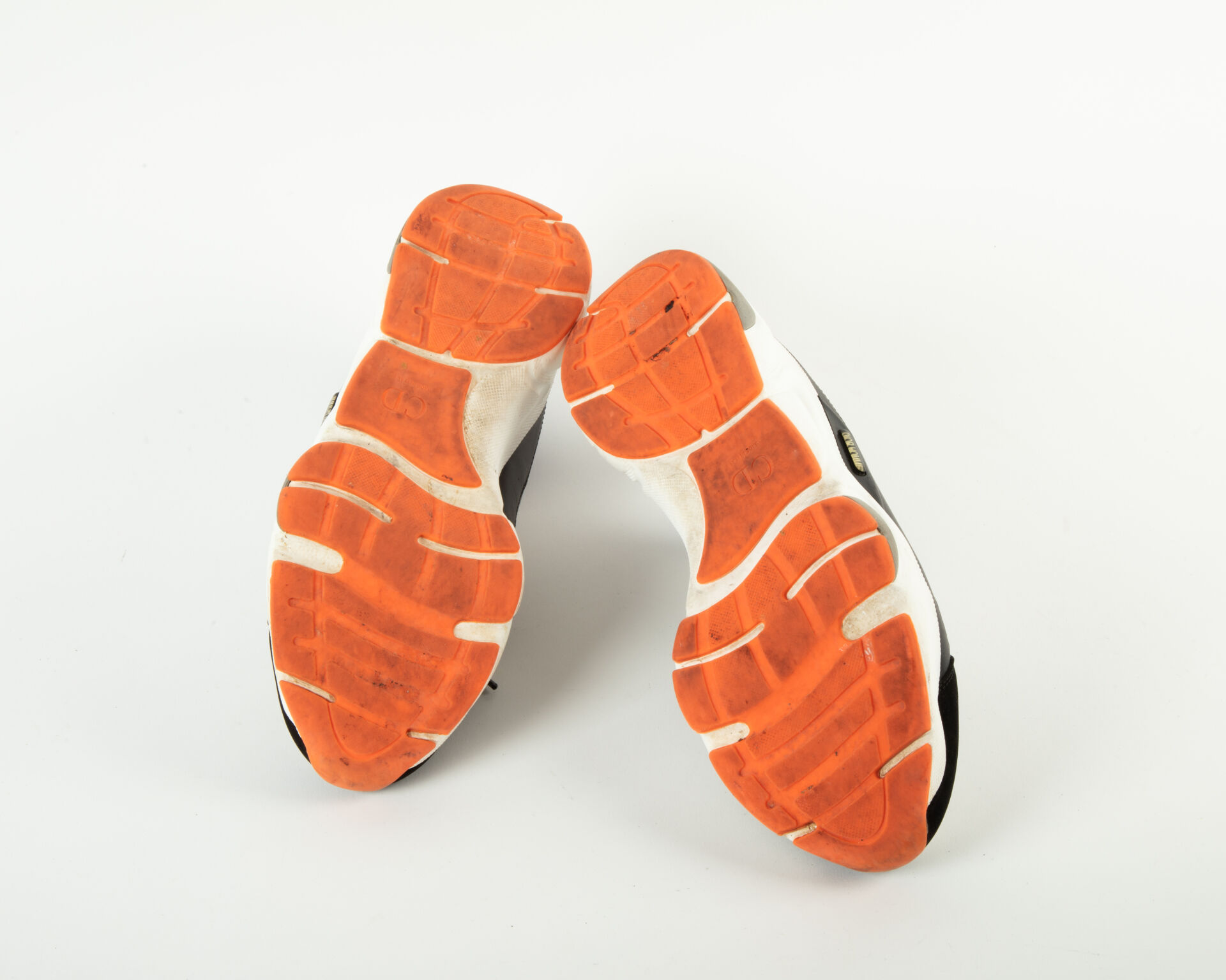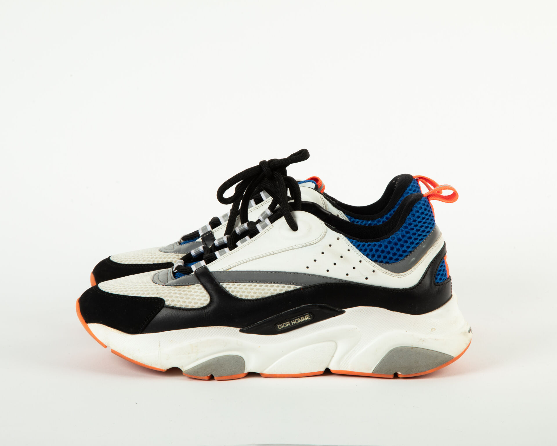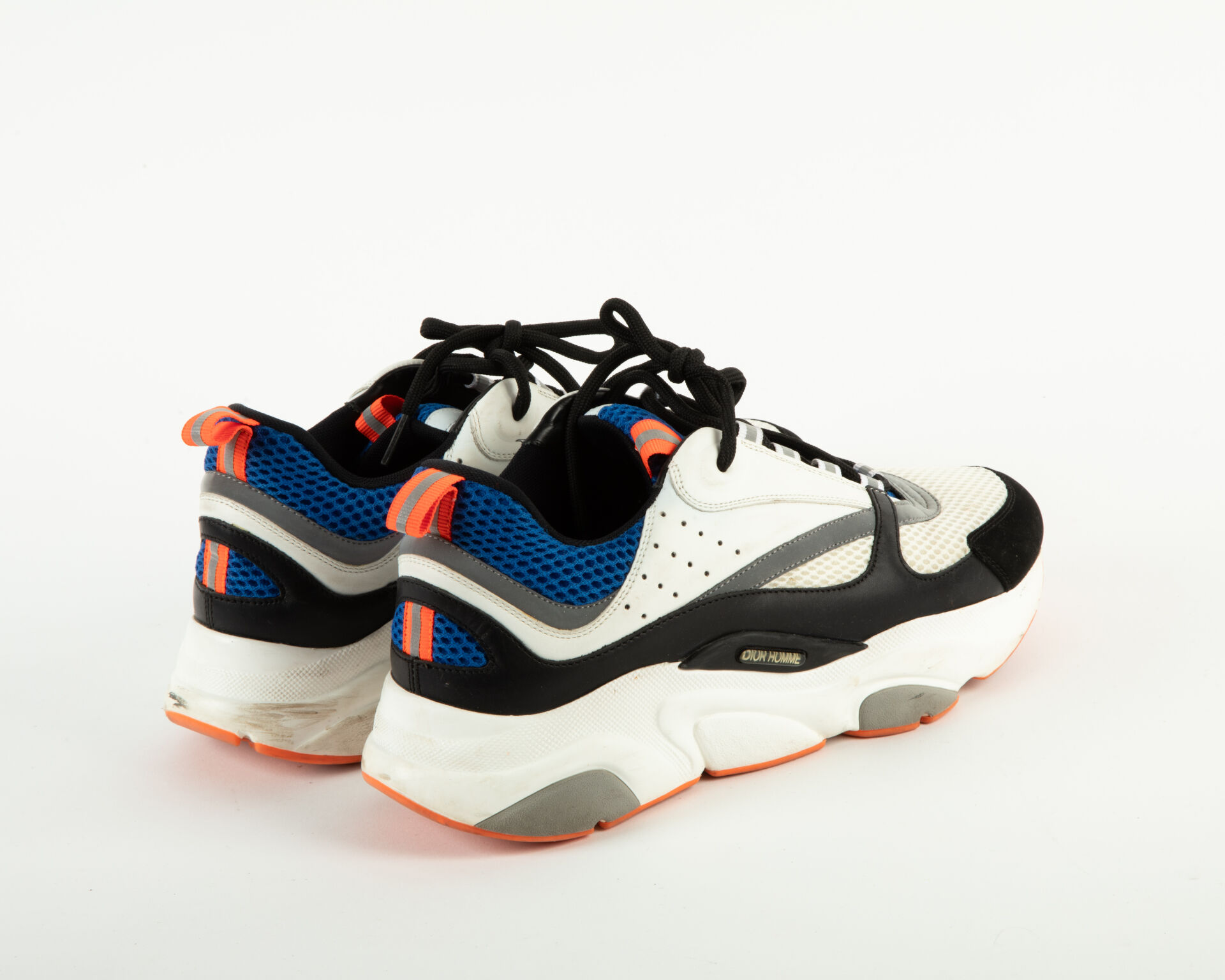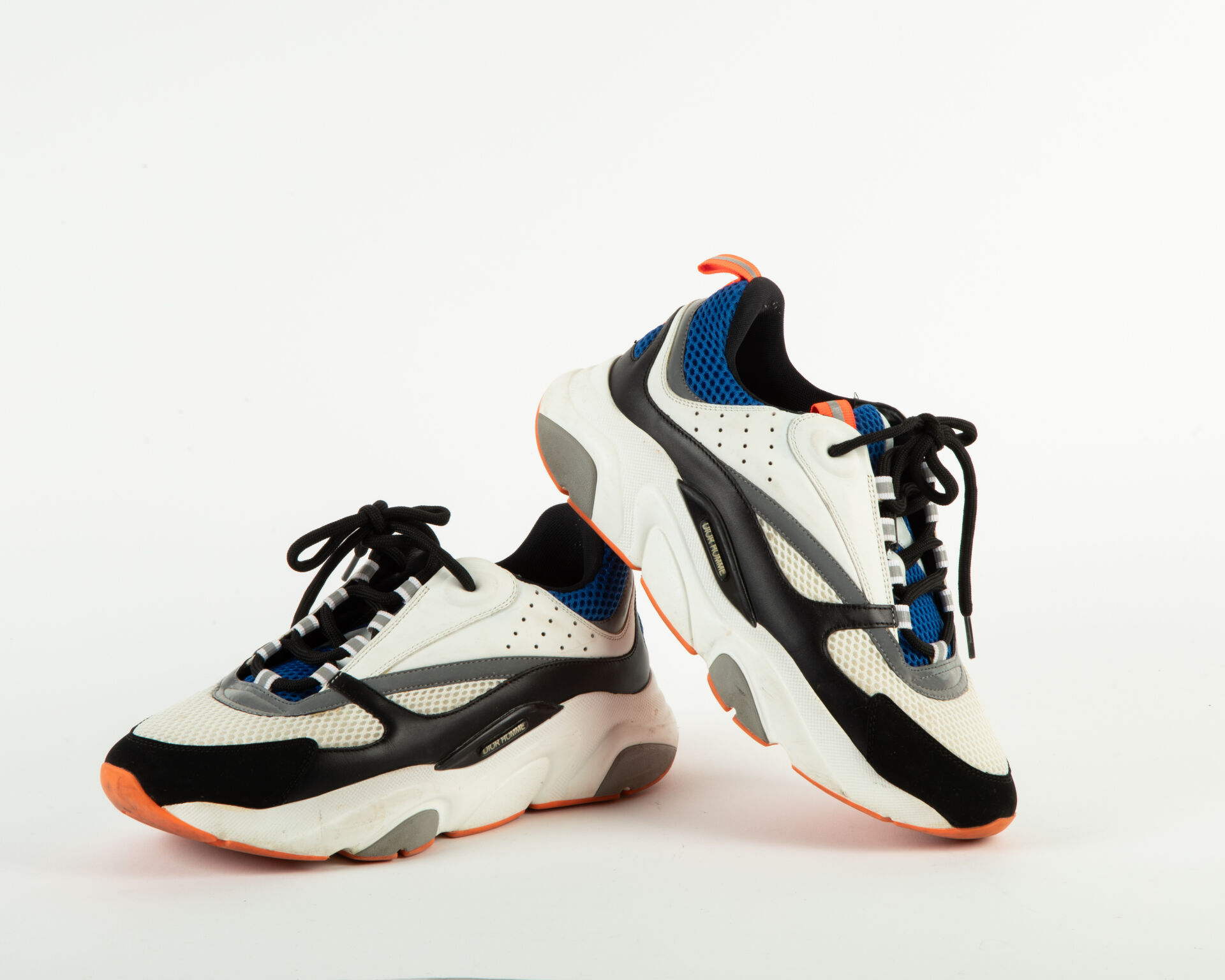 175 ESTIMATION: 80 / 120 € CHRISTIAN DIOR Modèle B2 – Paire de basket en cuir blanc et noir et tissu résille bleu Patine d’usage Taille 42