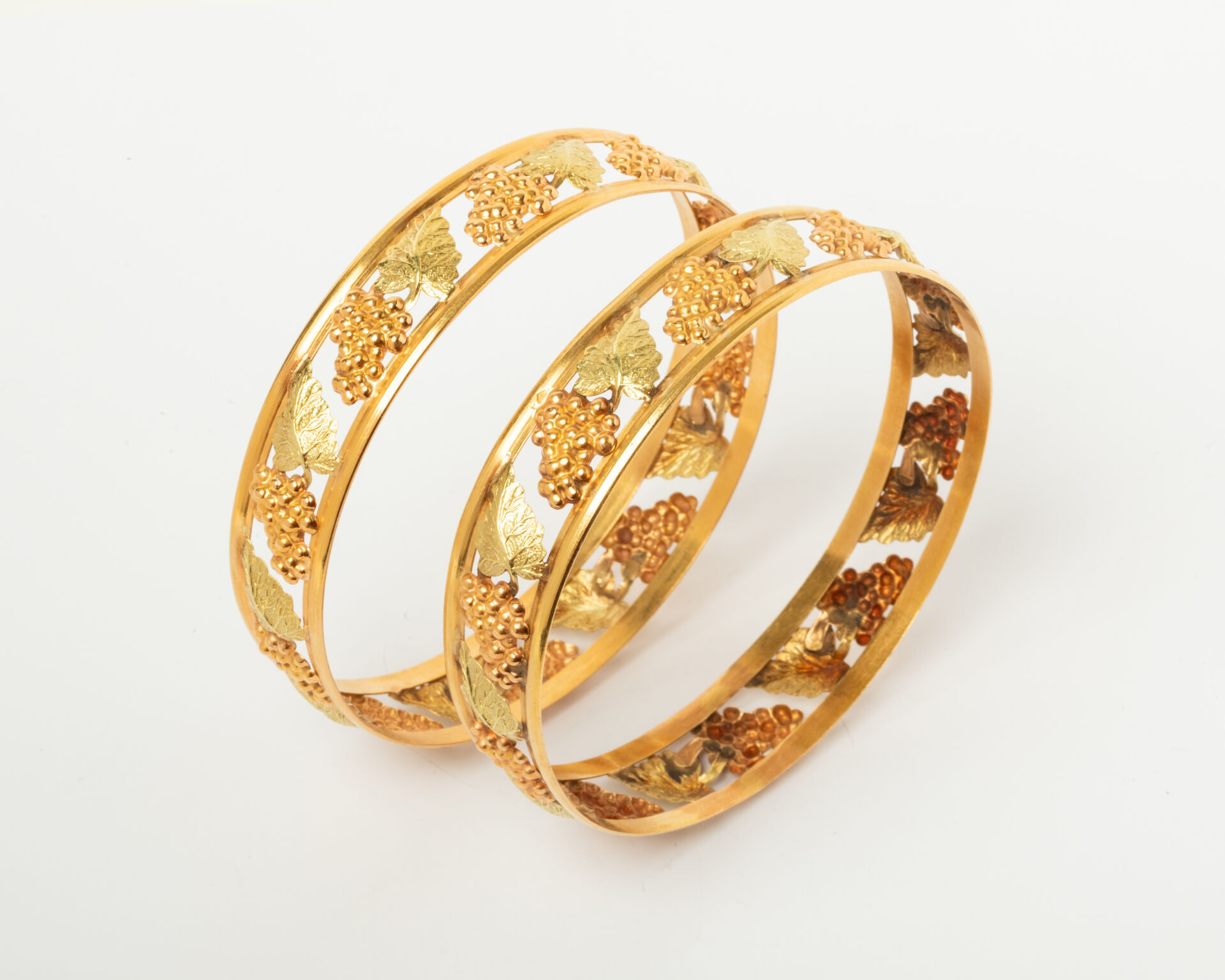 Deux bracelets en or jaune (750 millièmes) à décor ajouré de grappes de raisin et feuilles de vigne