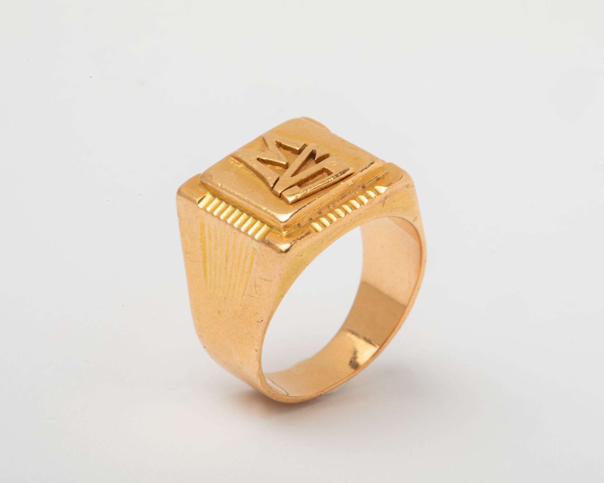 Chevalière en or jaune (750 millièmes) chiffrée MS