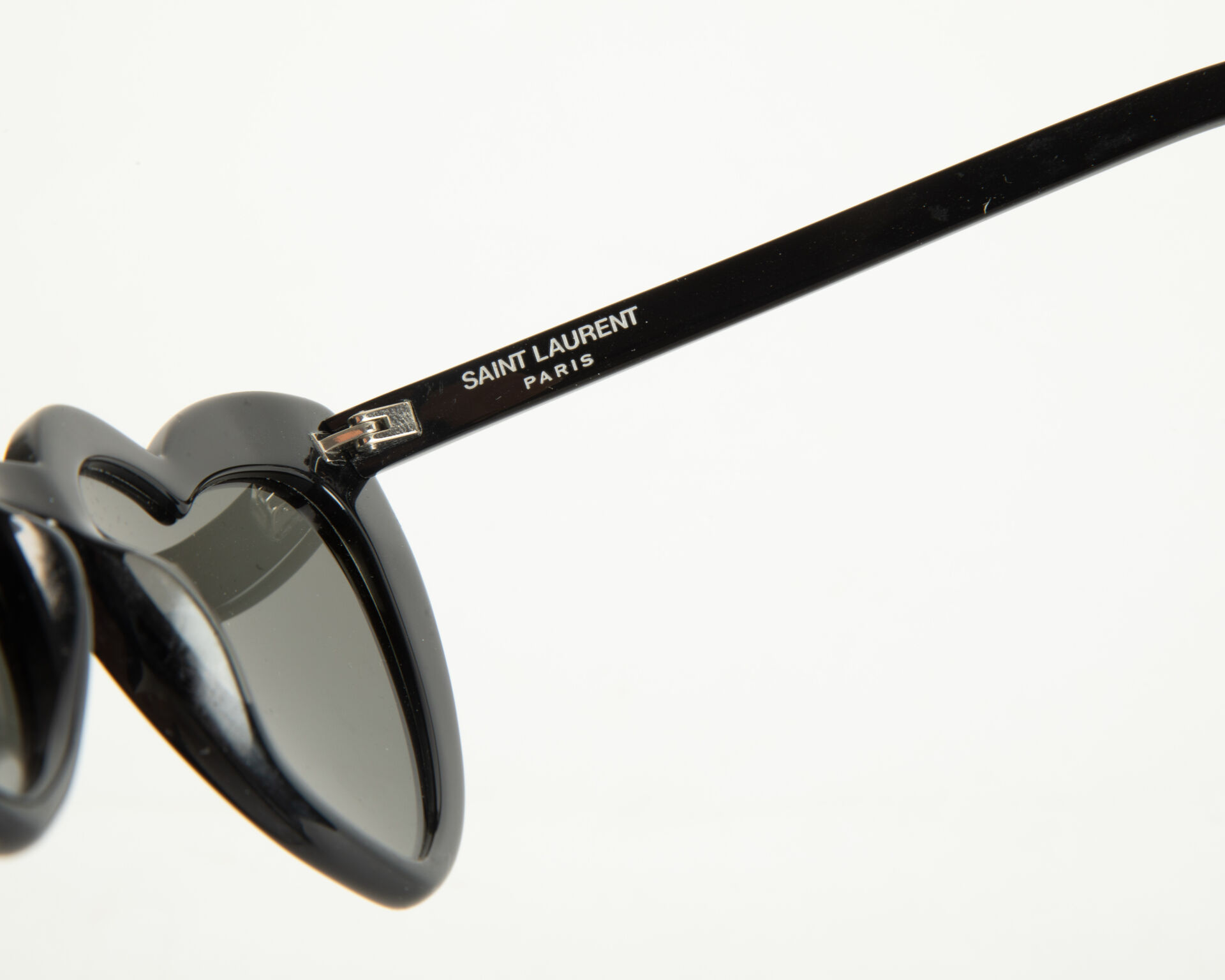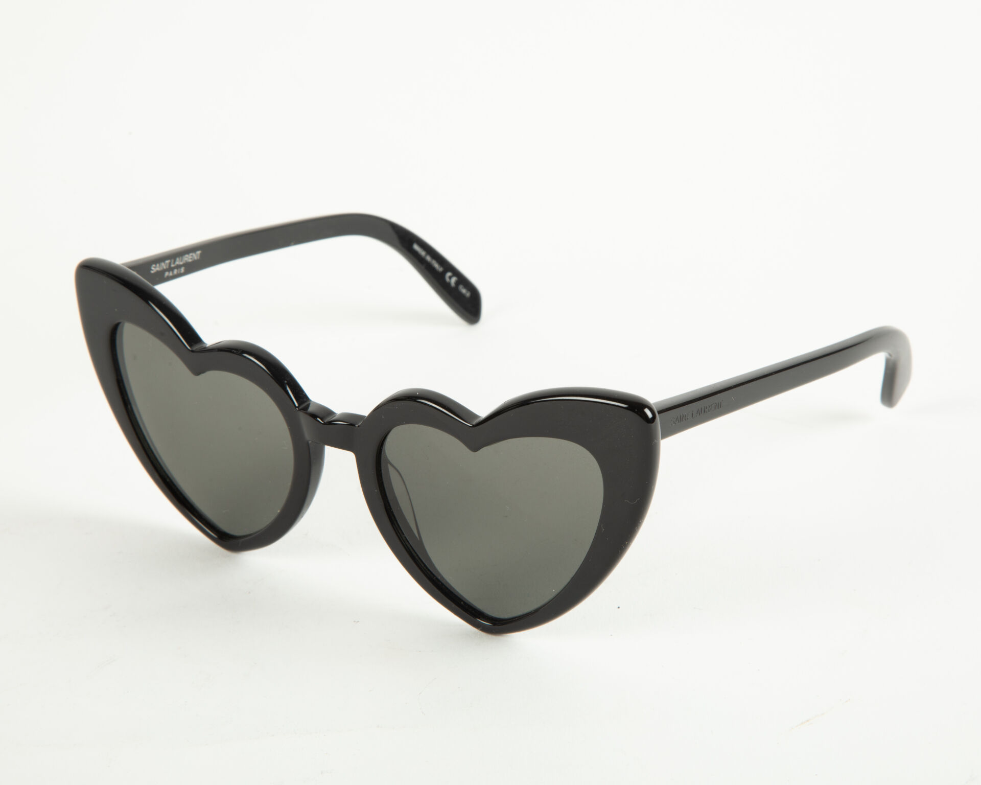 211 ESTIMATION: 60 / 80 € YVES SAINT LAURENT Modèle Loulou – Paire de lunettes de soleil coeur en acétate noir Dans un étui