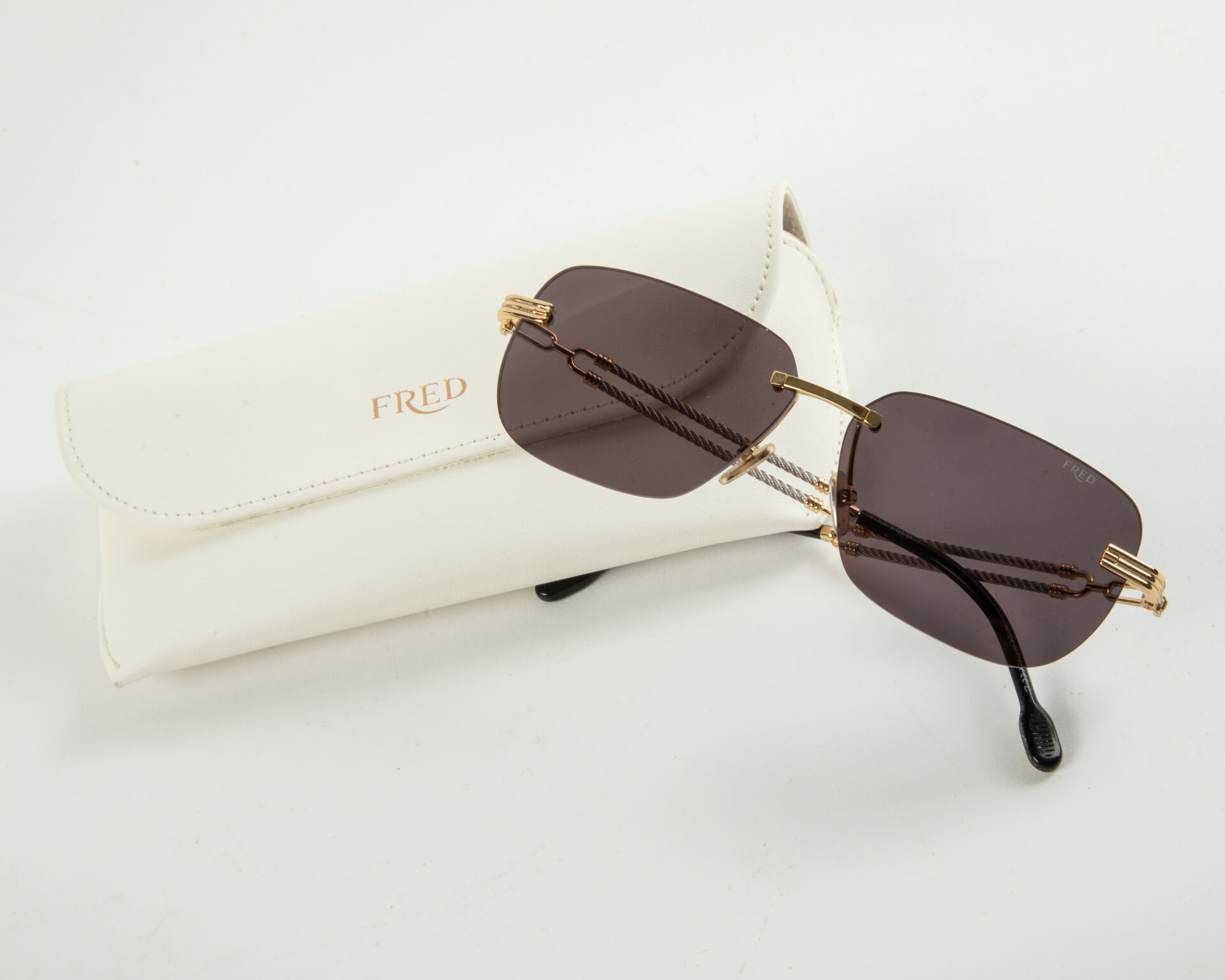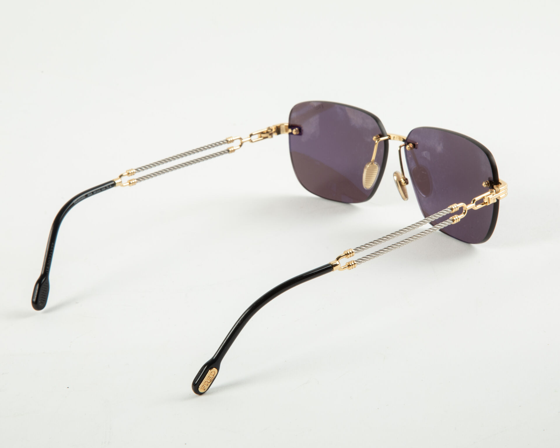 Modèle Force 10 – Paire de lunettes de soleil monture en métal doré, câble marin et acétate, verres fumé