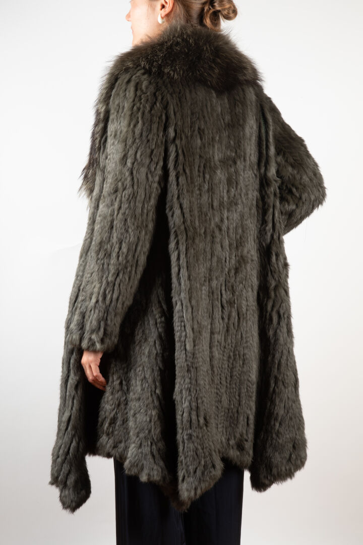 228 ESTIMATION: 80 / 120 € ANTIMATO Longue veste en fourrure de lapin et renard vert kaki Taille supposée : 38/40