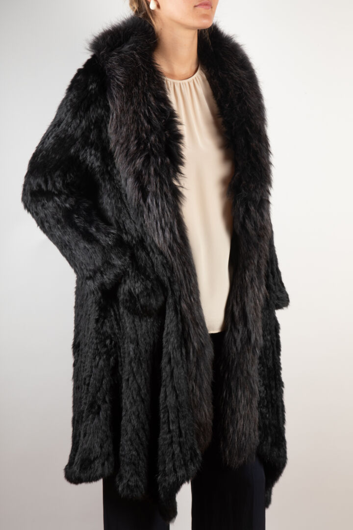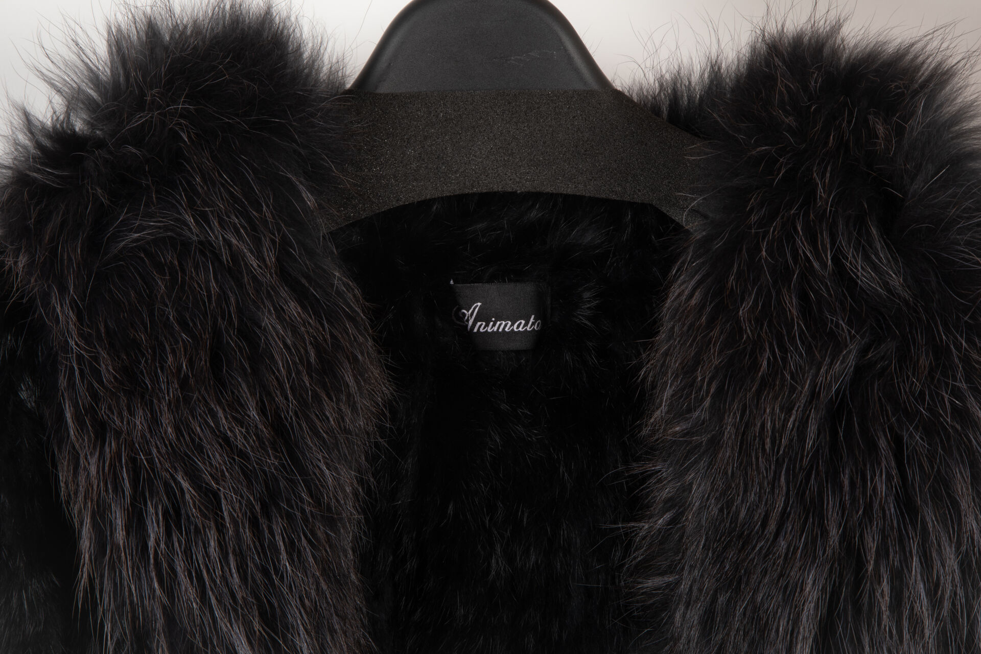 229 ESTIMATION: 80 / 120 € ANTIMATO Longue veste en fourrure de lapin et renard noire Taille supposée : 38