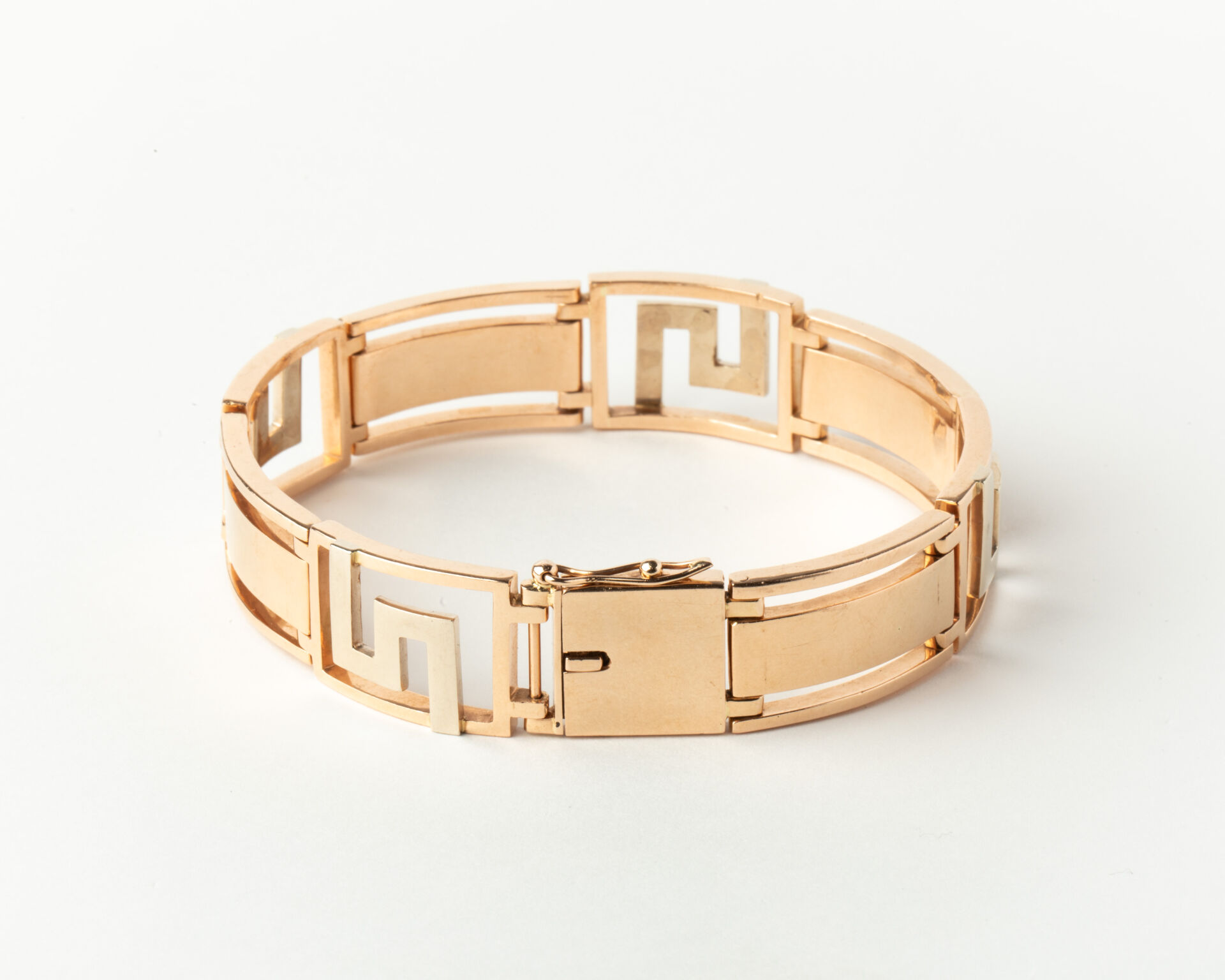 32 ESTIMATION: 2600 / 2700 € Bracelet en or rose (585 millièmes) à alternance de mailles ajourées Poids : 87 g Longueur : 23,9 cm