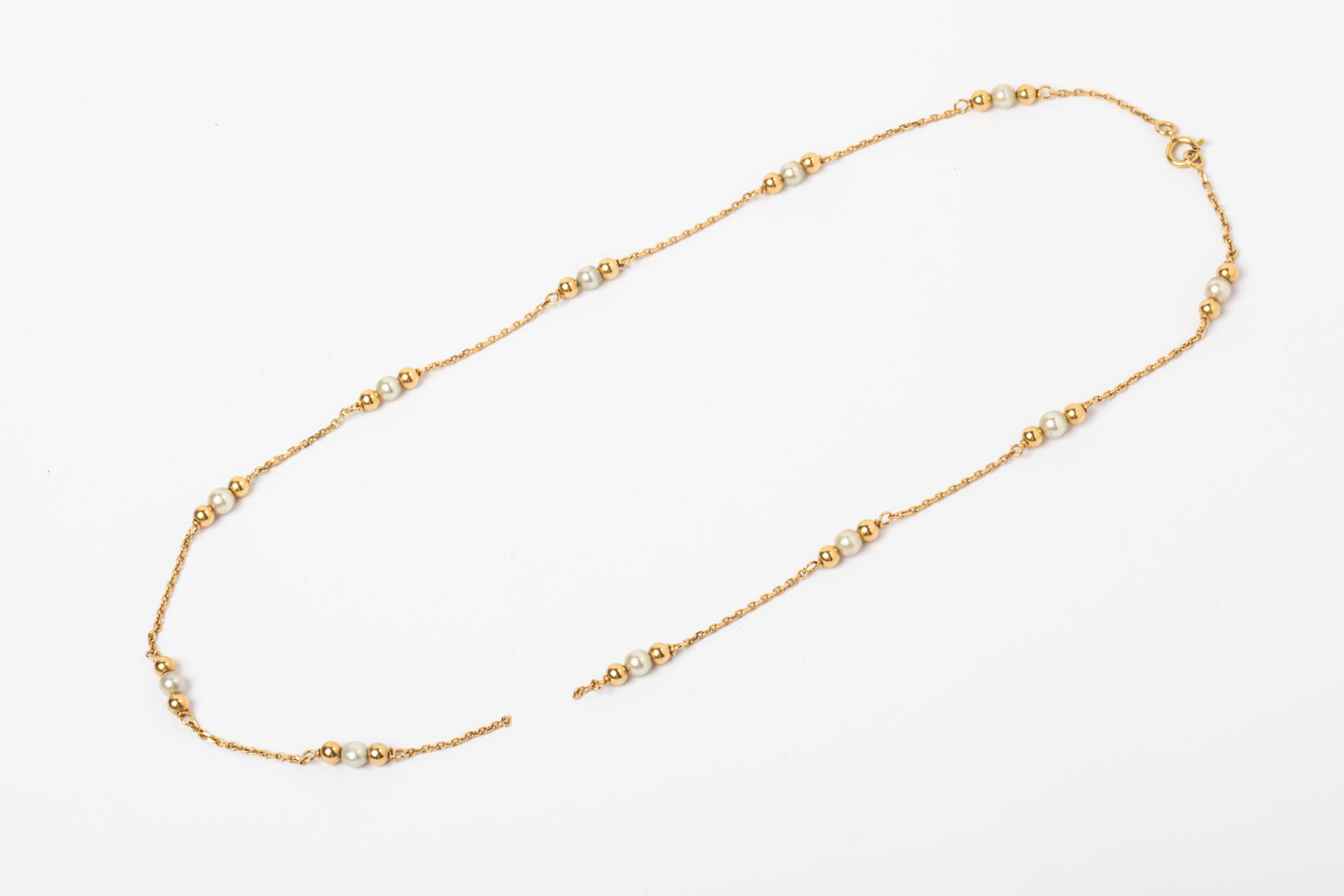 Chaine en or 750 millième (18k) ) à maille forçat alternée de perles d’or et de perles