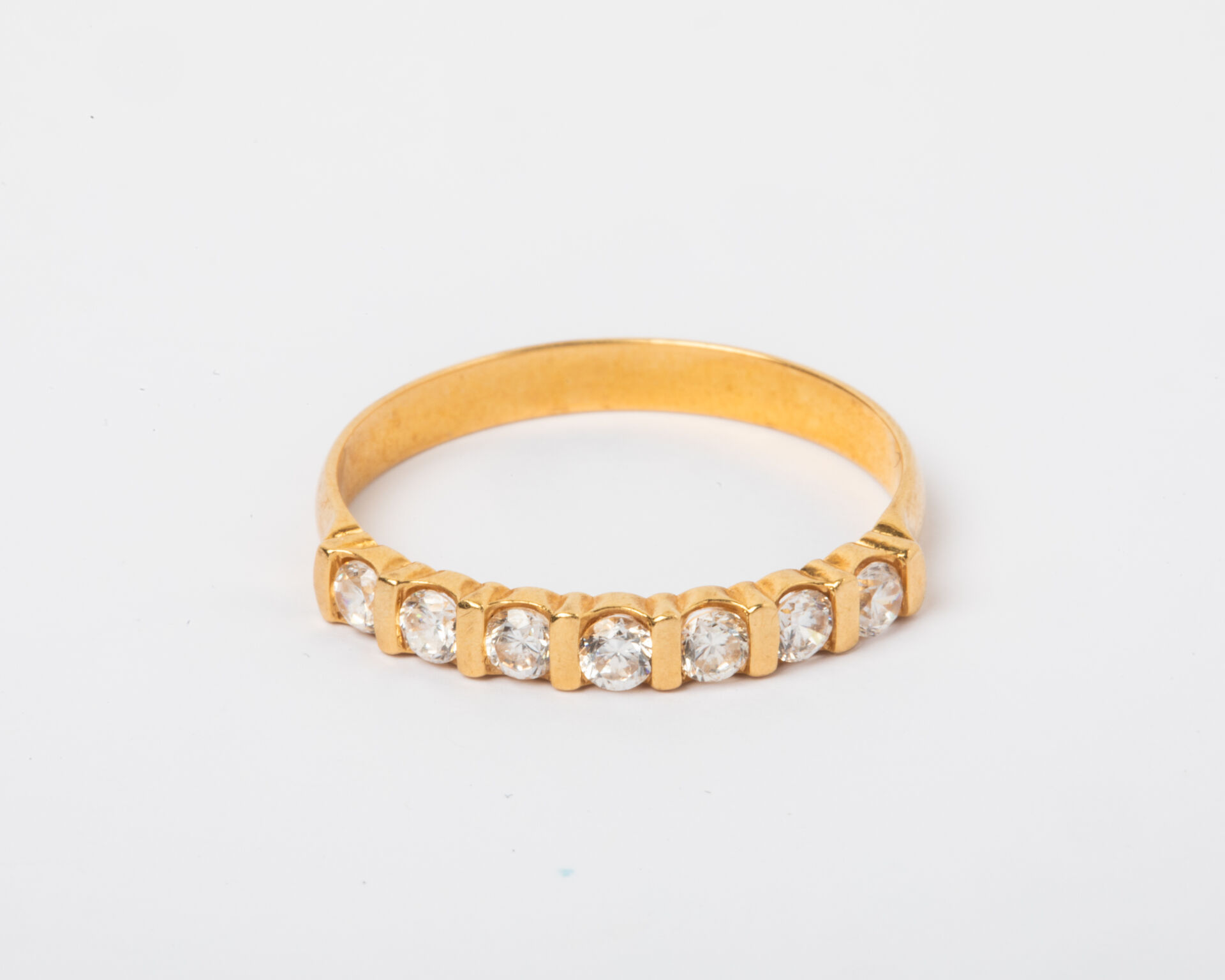 Demi-anneau en or 750 millièmes (18k) et pierres.