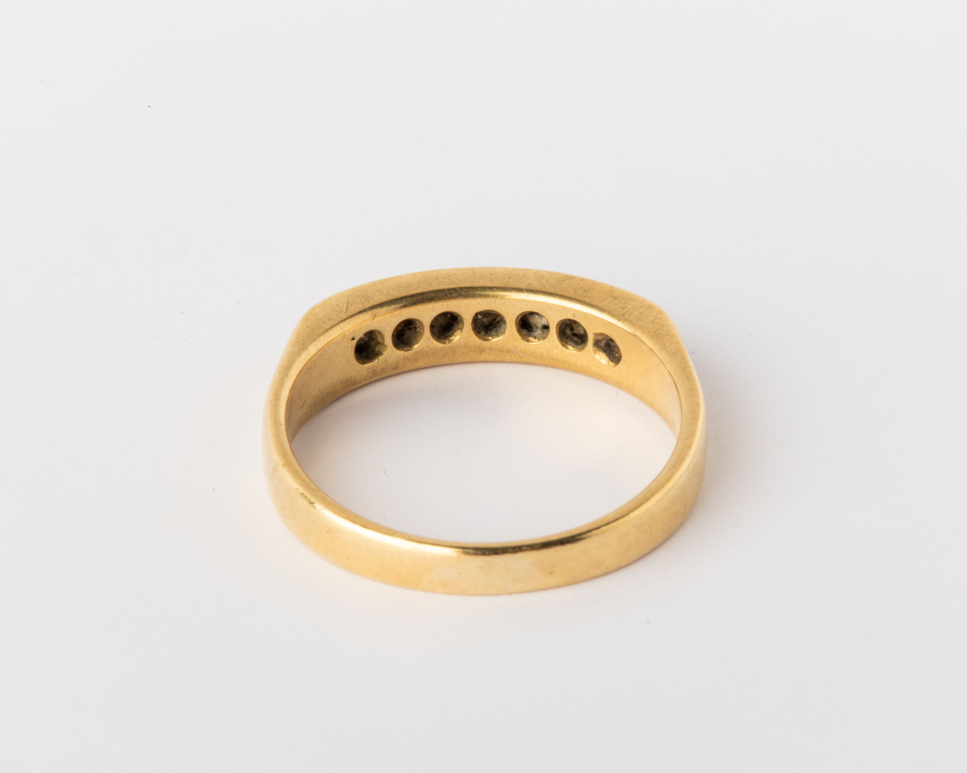 56 ESTIMATION: 100 / 200 € Demi-anneau en or 750 millième (18k) et oxydes (manque un). TDD : 56 Poids brut : 4,5 g