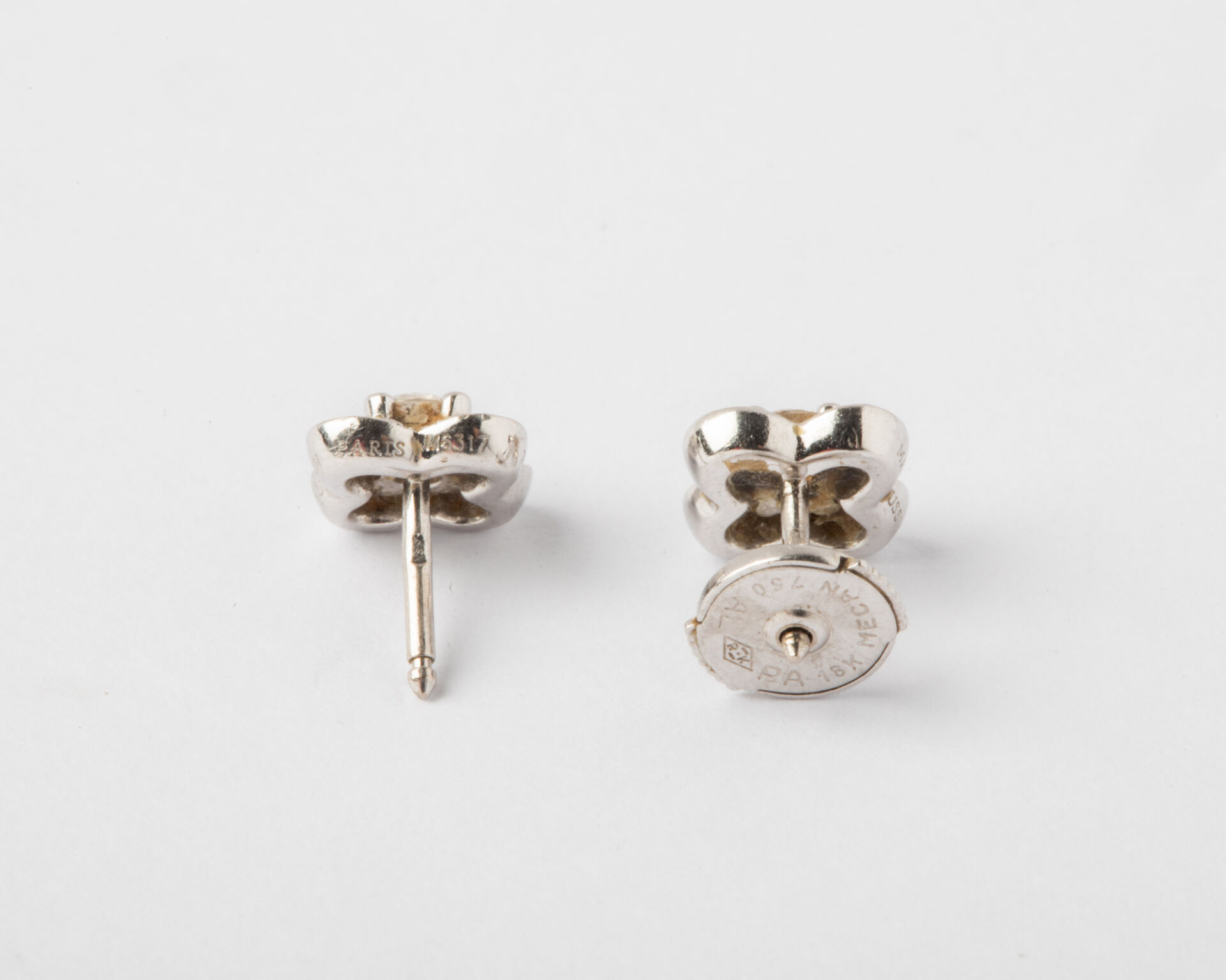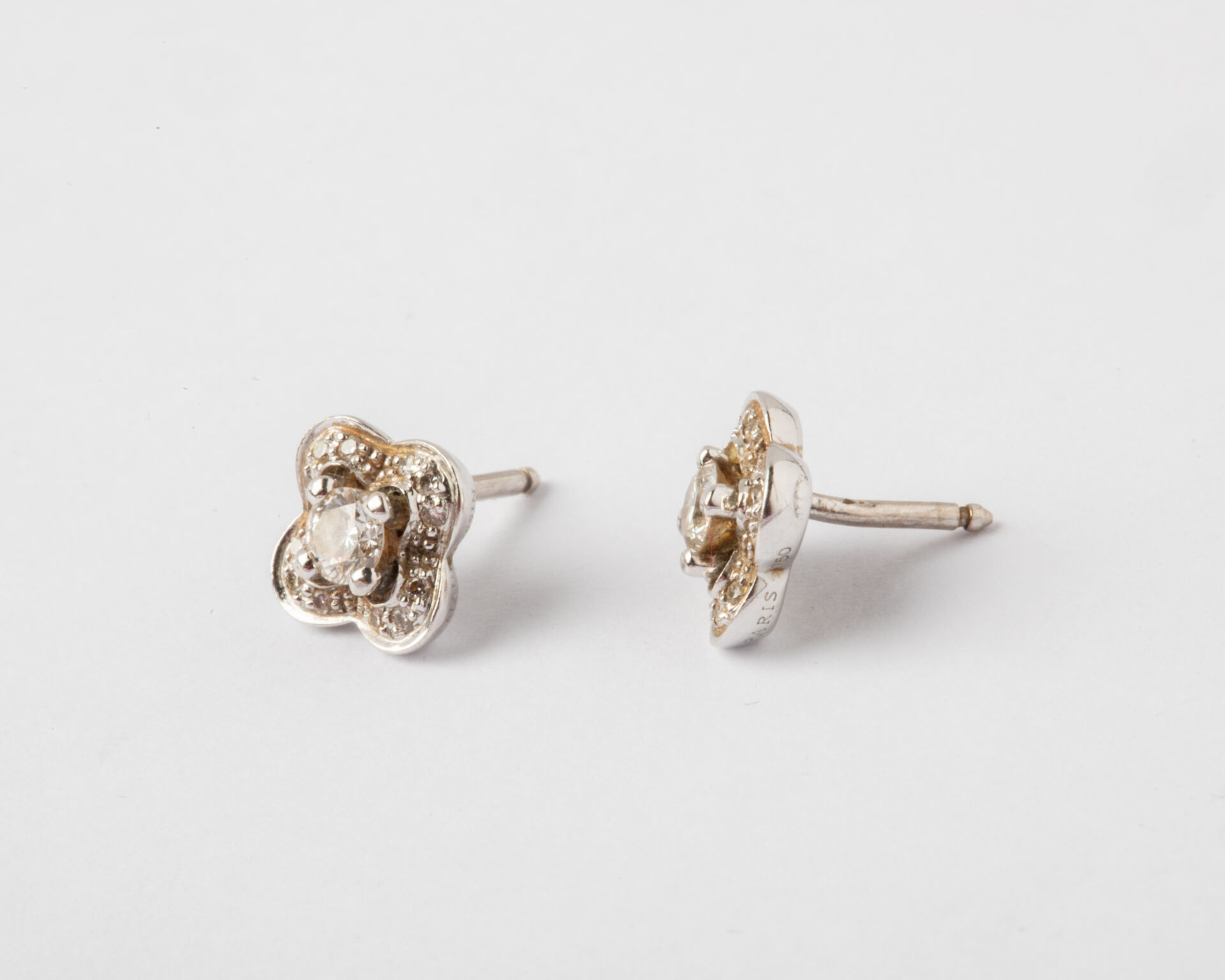 Paire de boucles d’oreille en or blanc (750 millièmes) pavées de brillants formant une fleur