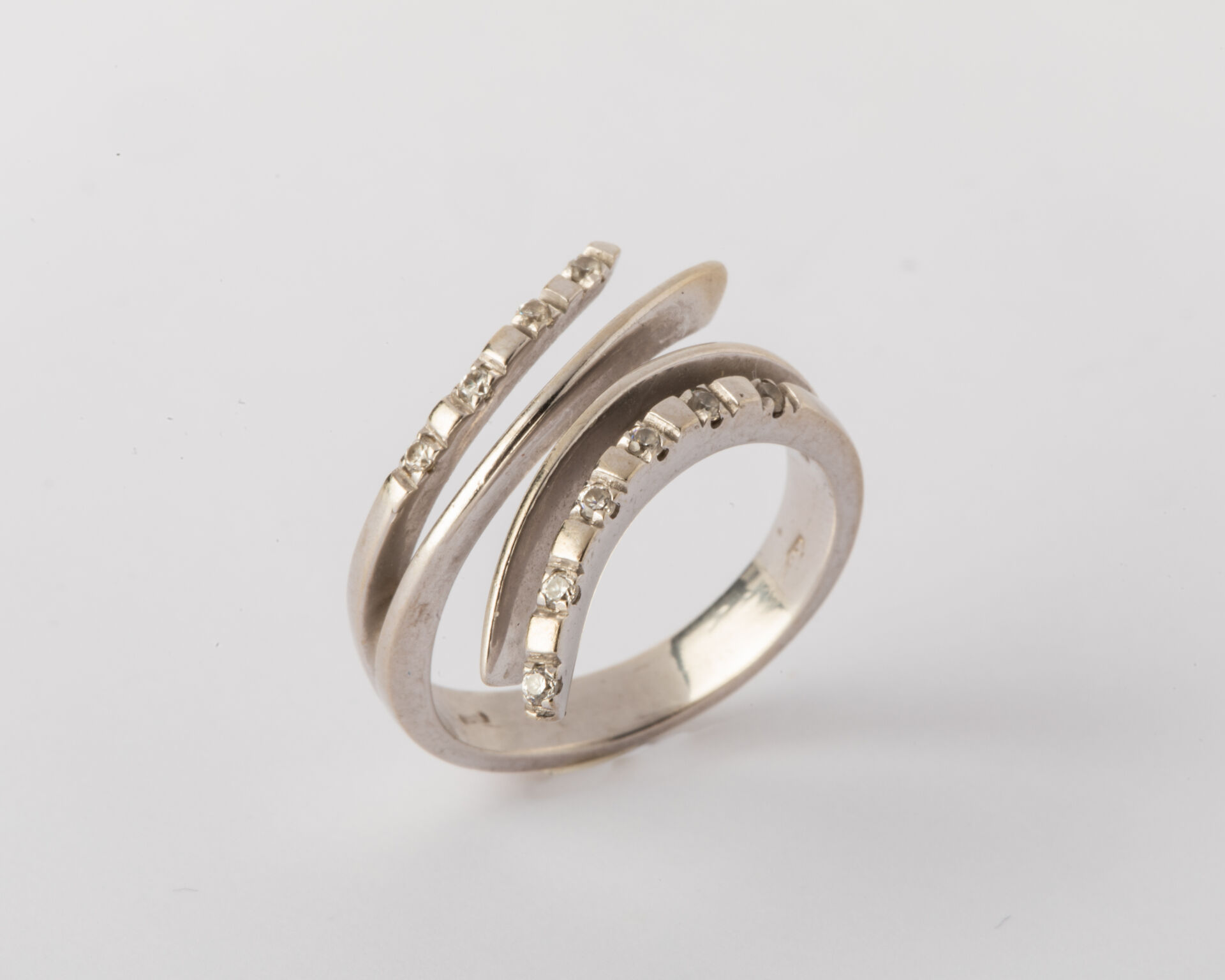 Bague en or gris (750 millièmes) pavée de pierres incolores