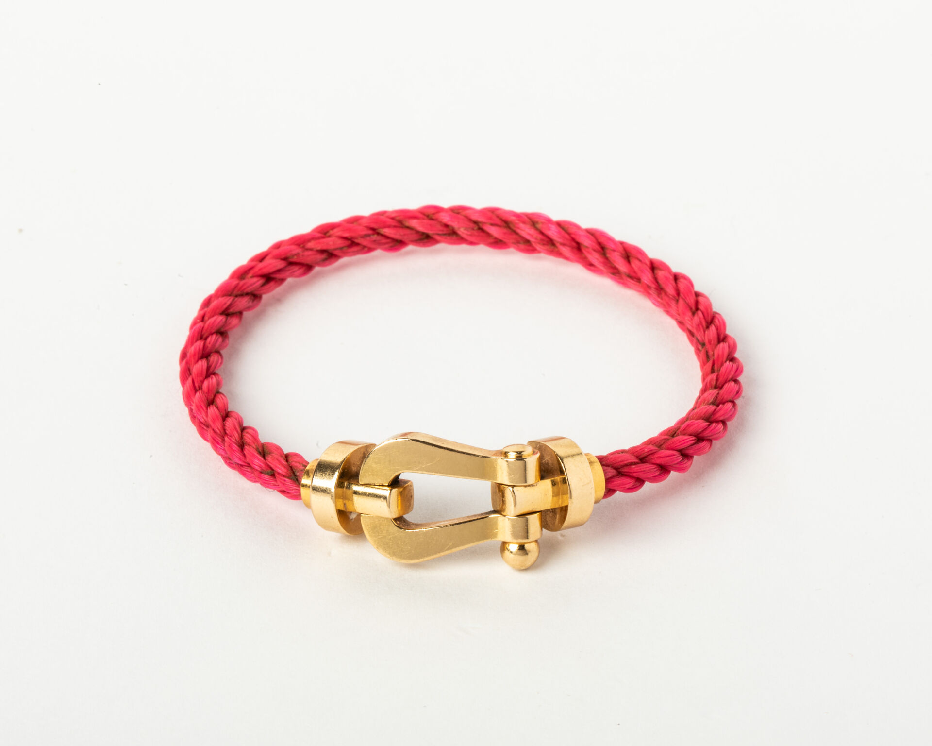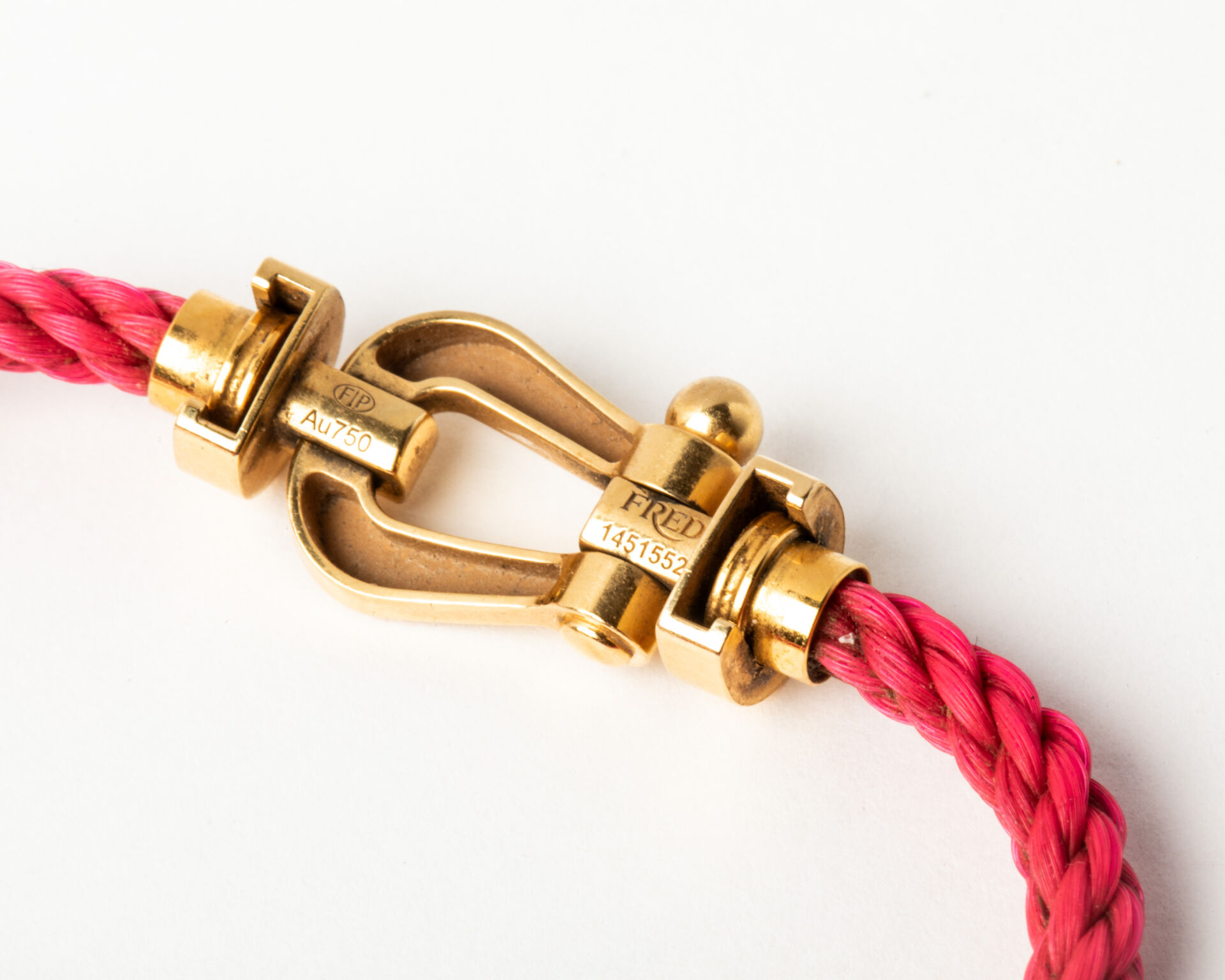 83 ESTIMATION: 600 / 800 € FRED Modèle Force 10 – Bracelet à manille grand modèle en or 750 millièmes (18k), cordage rose Numéroté et signé. Poids brut : 11,2 g. Longueur de la corde : 13 cm Longueur de la manille : 2,6 x 1,4 cm
