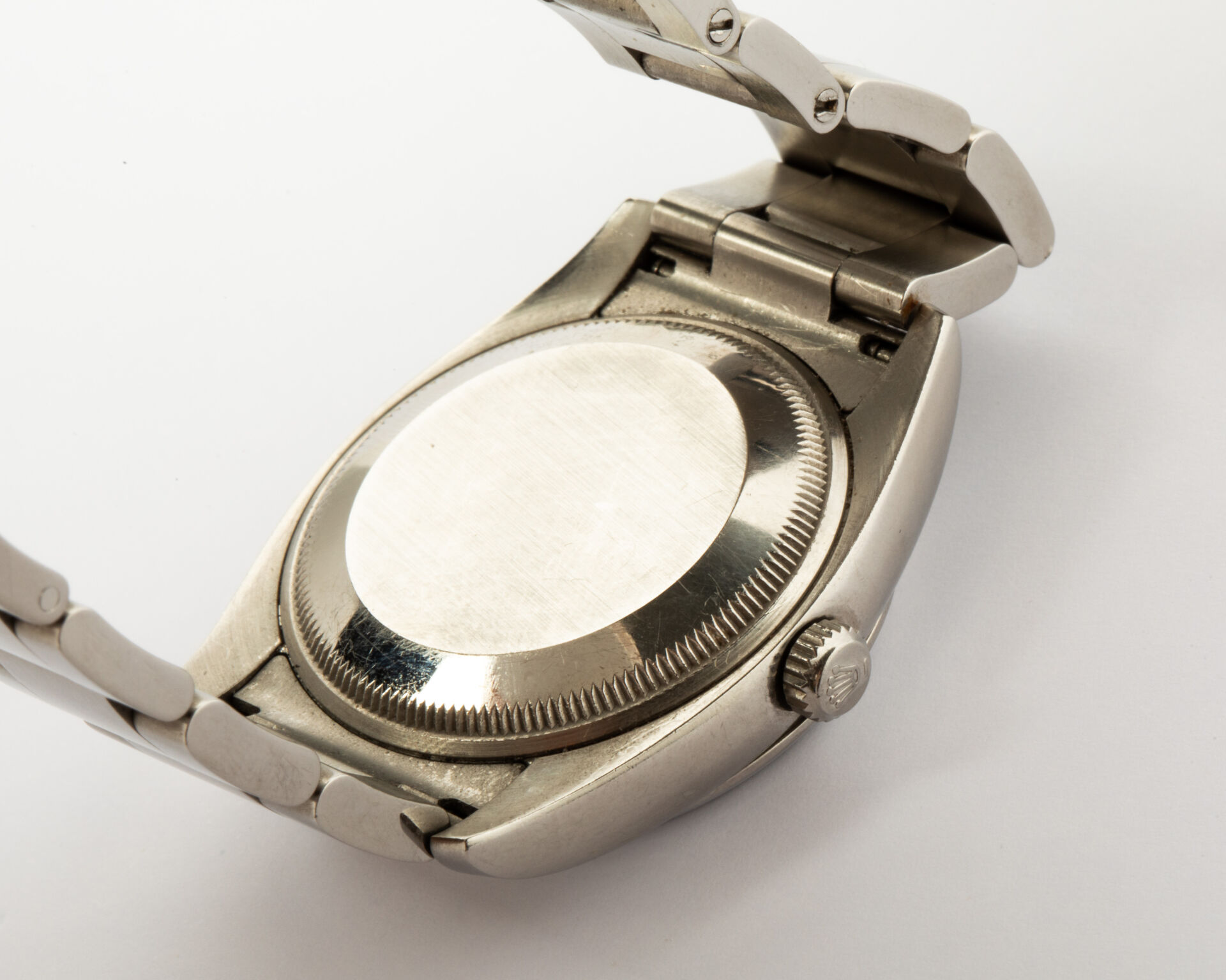 90 ESTIMATION: 2200 / 3000 € ROLEX Oyster Perpetual Air King. Réf. 2330. Montre mixte en acier. Boîtier rond. Cadran à fond argenté avec index des heures en chiffres arabes et bâtons. Mouvement automatique. Boîtier : 38 mm. Fonctionne.