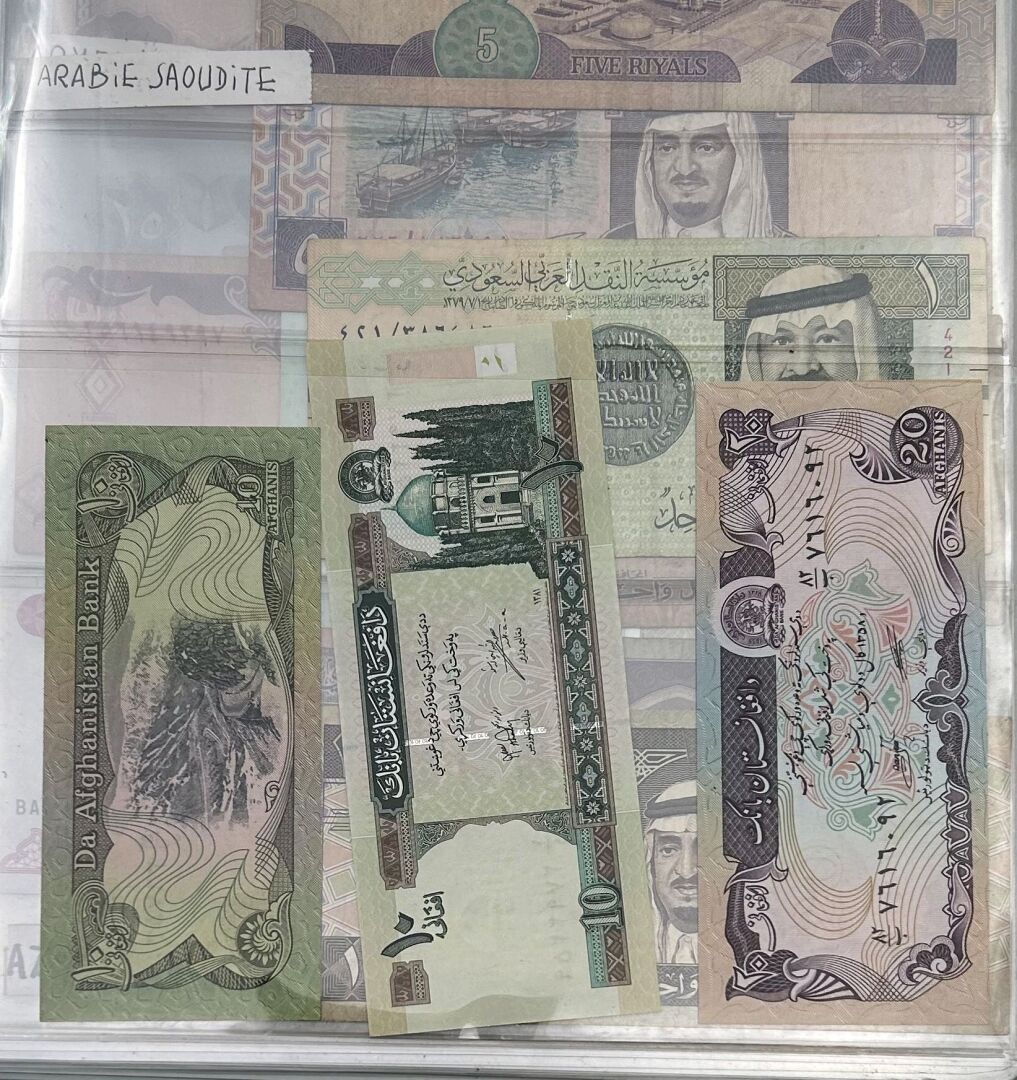 189 RÉSULTAT: 50 € ESTIMATION: 30 / 80 € Billets du monde – Moyen Orient, Afghanistan, Arabie Jordanie, Irak, Iran etc Collection de 60 billets différents A examiner