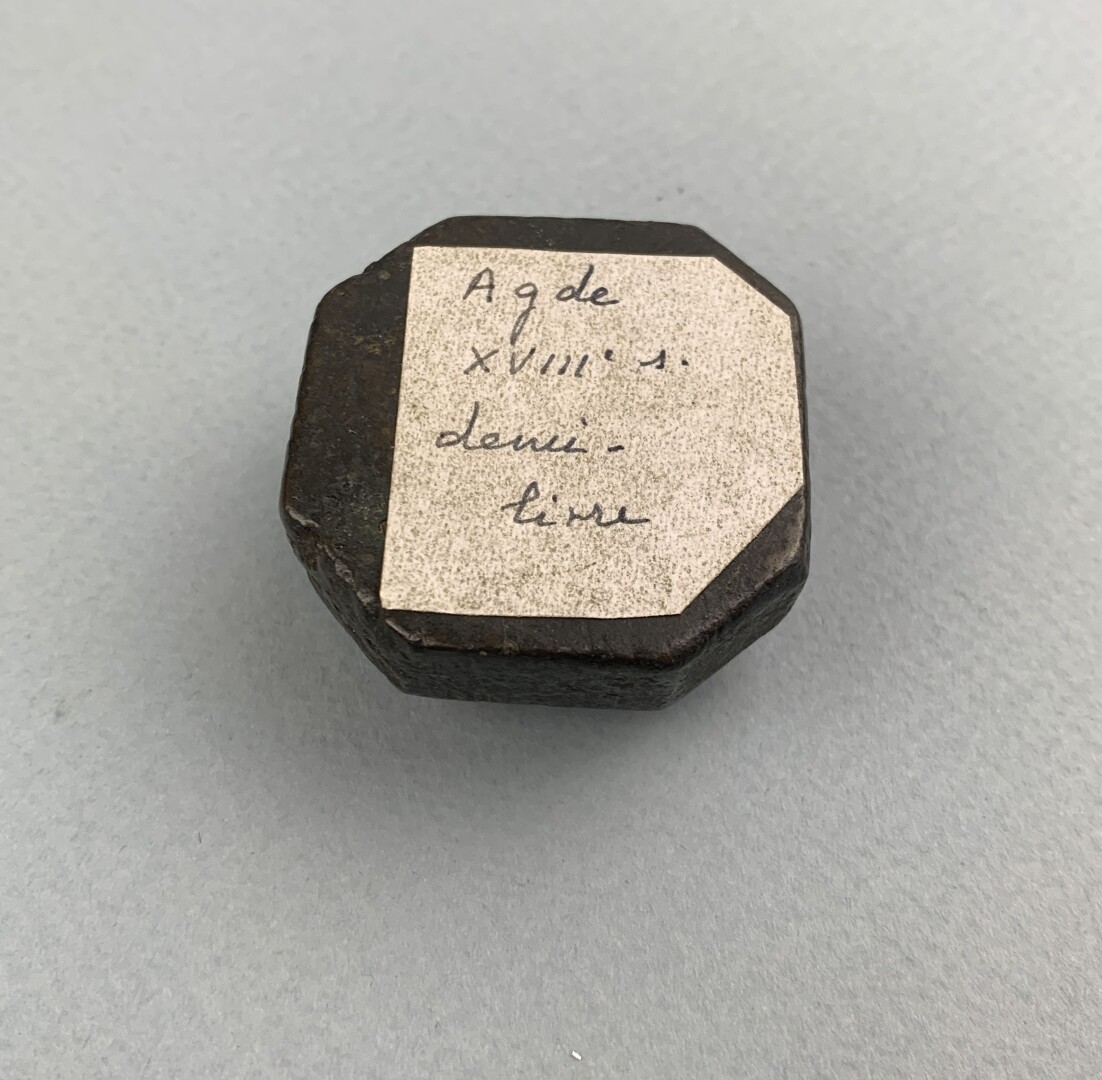 24 RÉSULTAT: 450 € ESTIMATION: 150 / 200 € POIDS DE VILLE Demi livre, Agde, XVIII° siècle Largeur : 42 mm Poids : 207 g