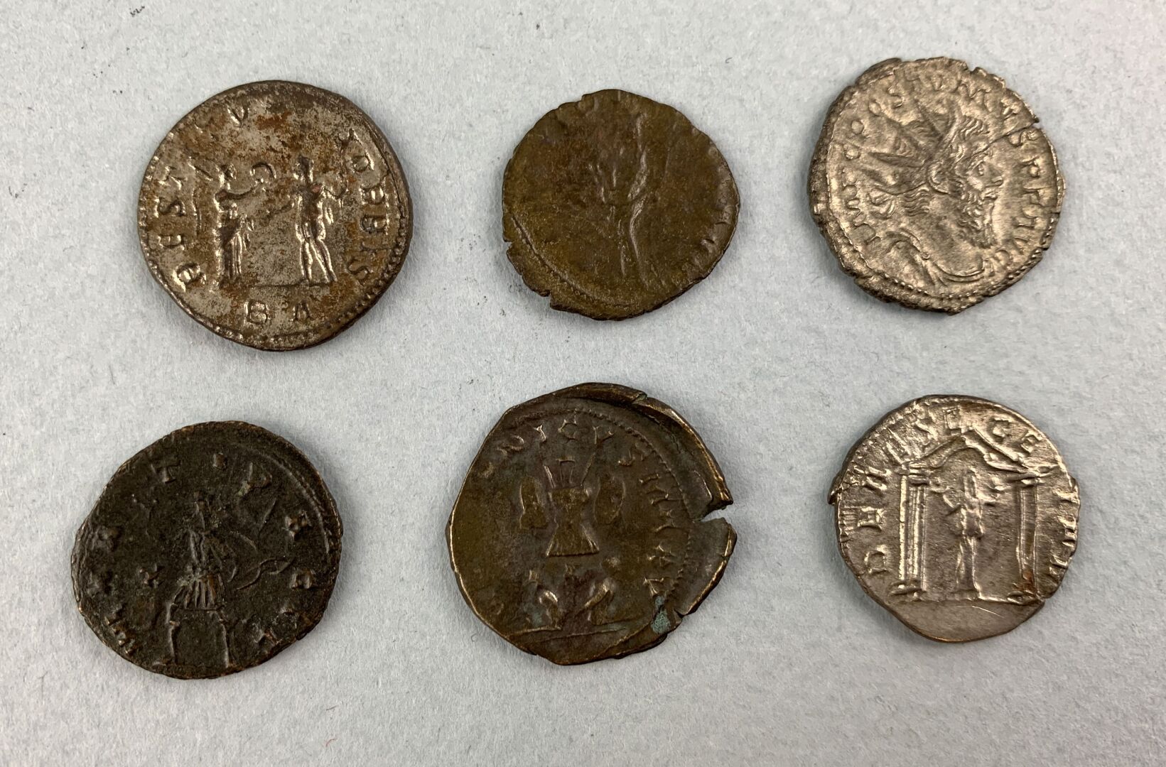 32 RÉSULTAT: 120 € ESTIMATION: 60 / 80 € Monnaie romaine Empire – Lot de 6 Antoniniens dont 1 Quintille Poids argent : 8 g