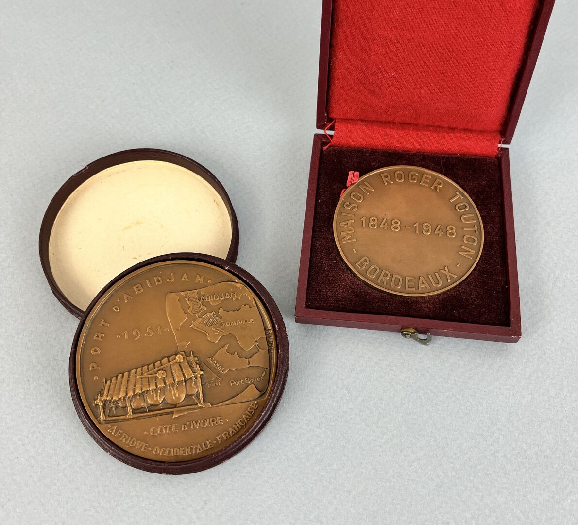 179 ESTIMATION: 30 / 40 € Ensemble de 2 médailles 1 Port d’Abidjan jeune fille SENOUFO et le Pont de BORDEAUX Maison Roger TOUTON