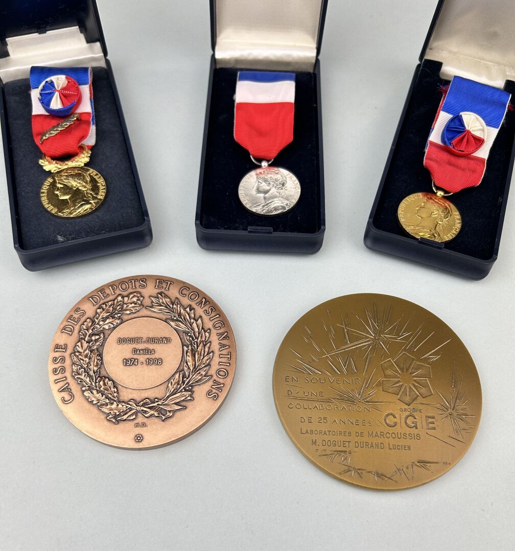 125 ESTIMATION: 20 / 40 € MEDAILLES – Lot de 3 médailles du travail en argent et vermeil et 2 médailles en bronze A étudier