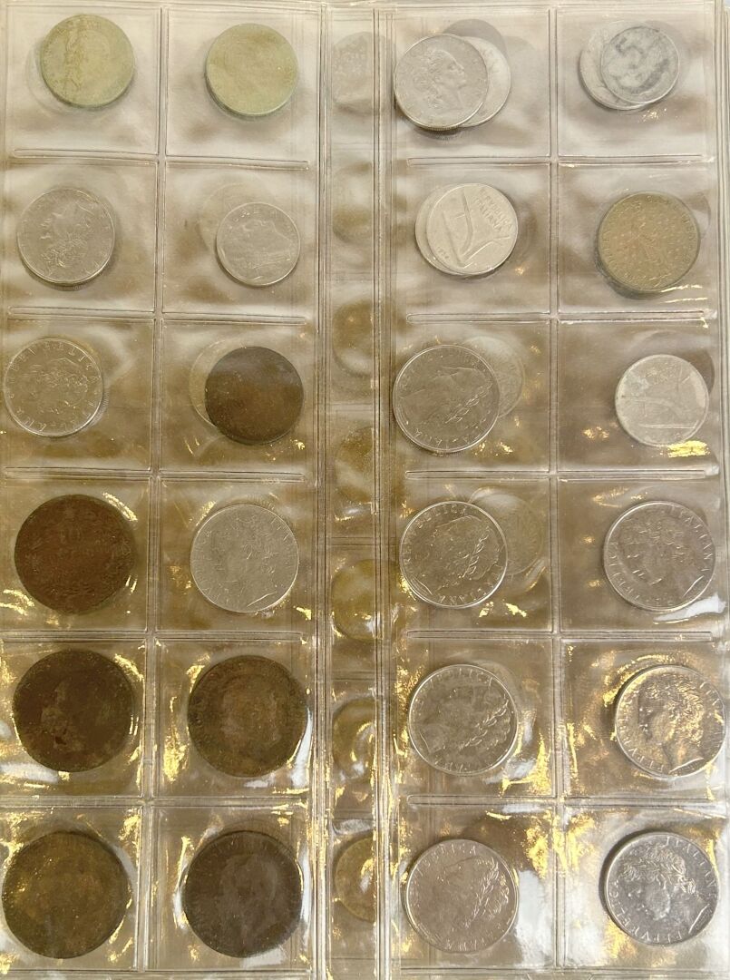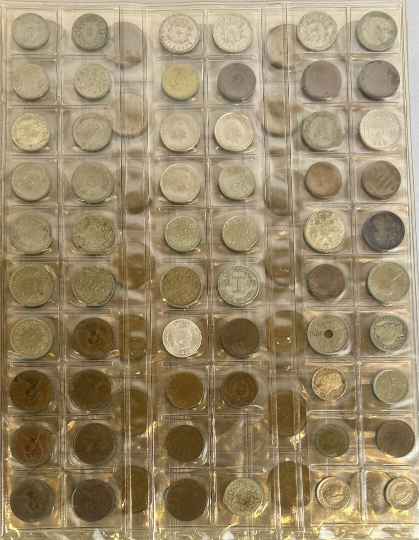 105 ESTIMATION: 20 / 50 € MONDE – Lot de monnaies divers pays sous feuilles plastiques Poids total : 3,480 kg A examiner
