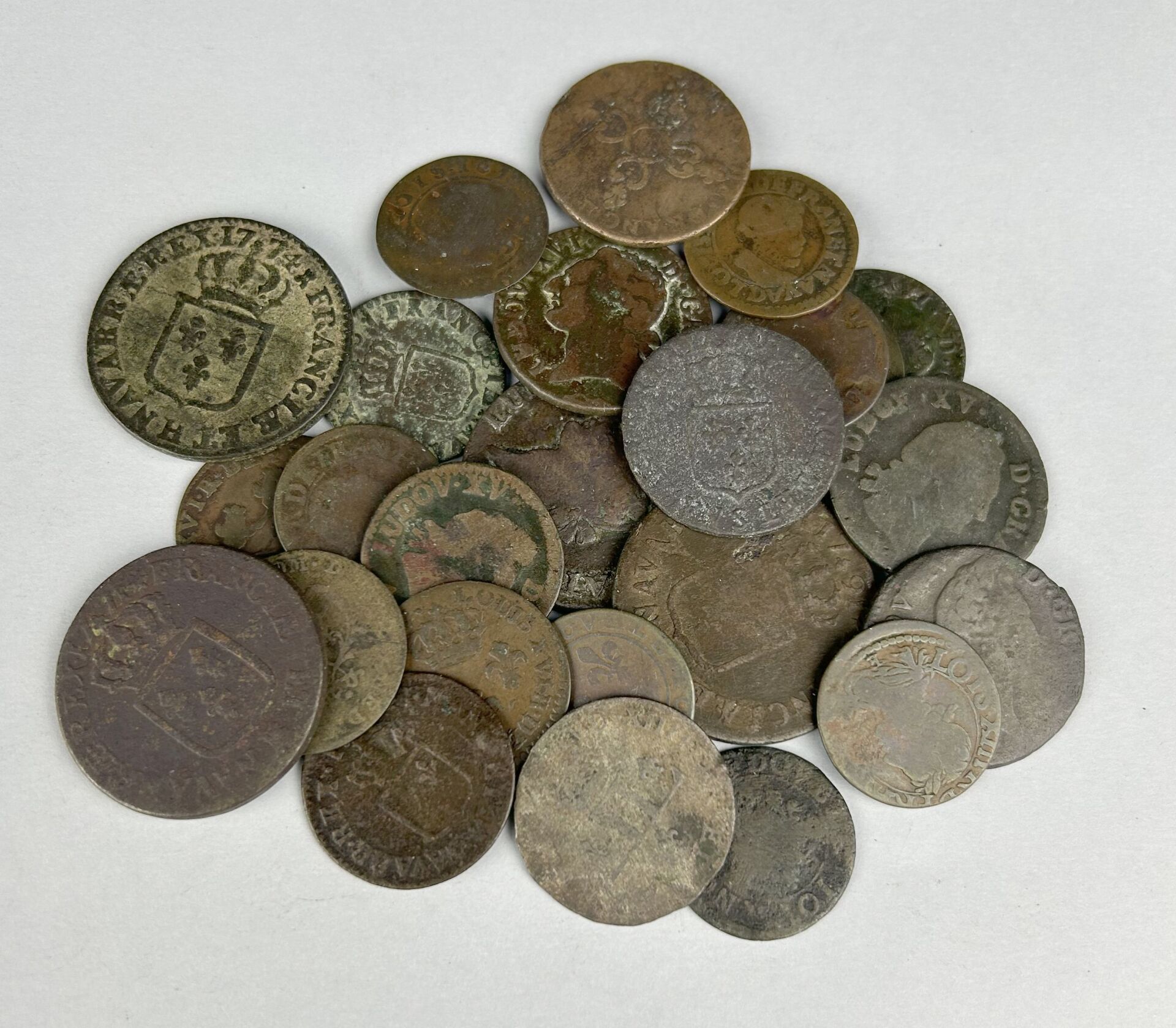 MONNAIES FRANCAISES ROYALES – Lot de 25 monnaies en bronze Louis XIII, XIV, XV, et XVI