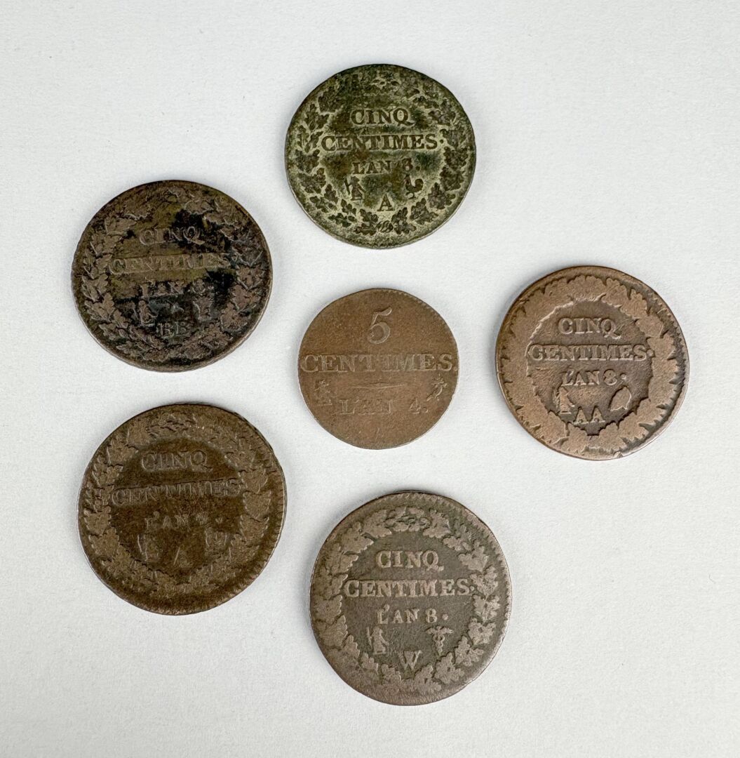 MONNAIES FRANCAISES MODERNES – Lot de 6 monnaies différentes de 5 centimes Dupré