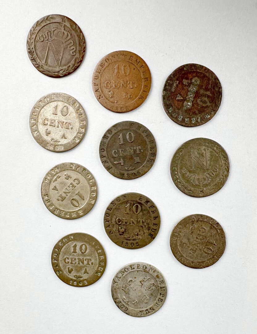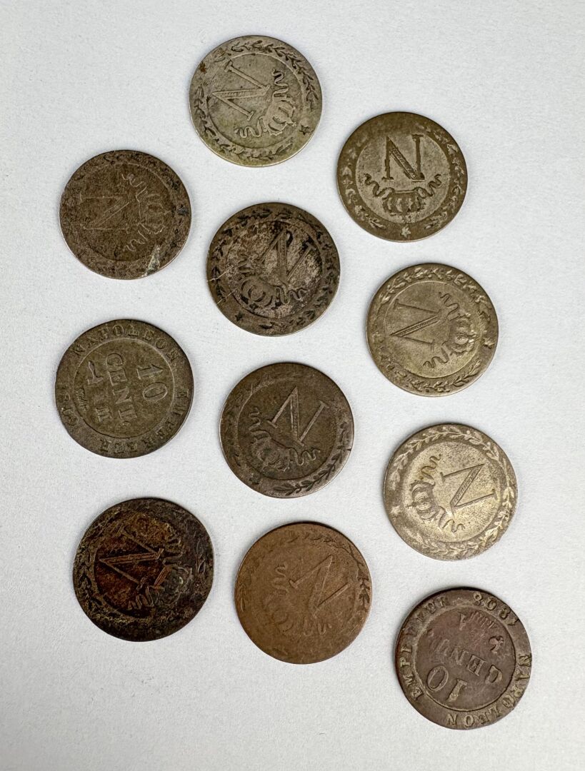 MONNAIES FRANCAISES MODERNES – Lot de 10 centimes Napoléon Ier 11 exemplaires variés