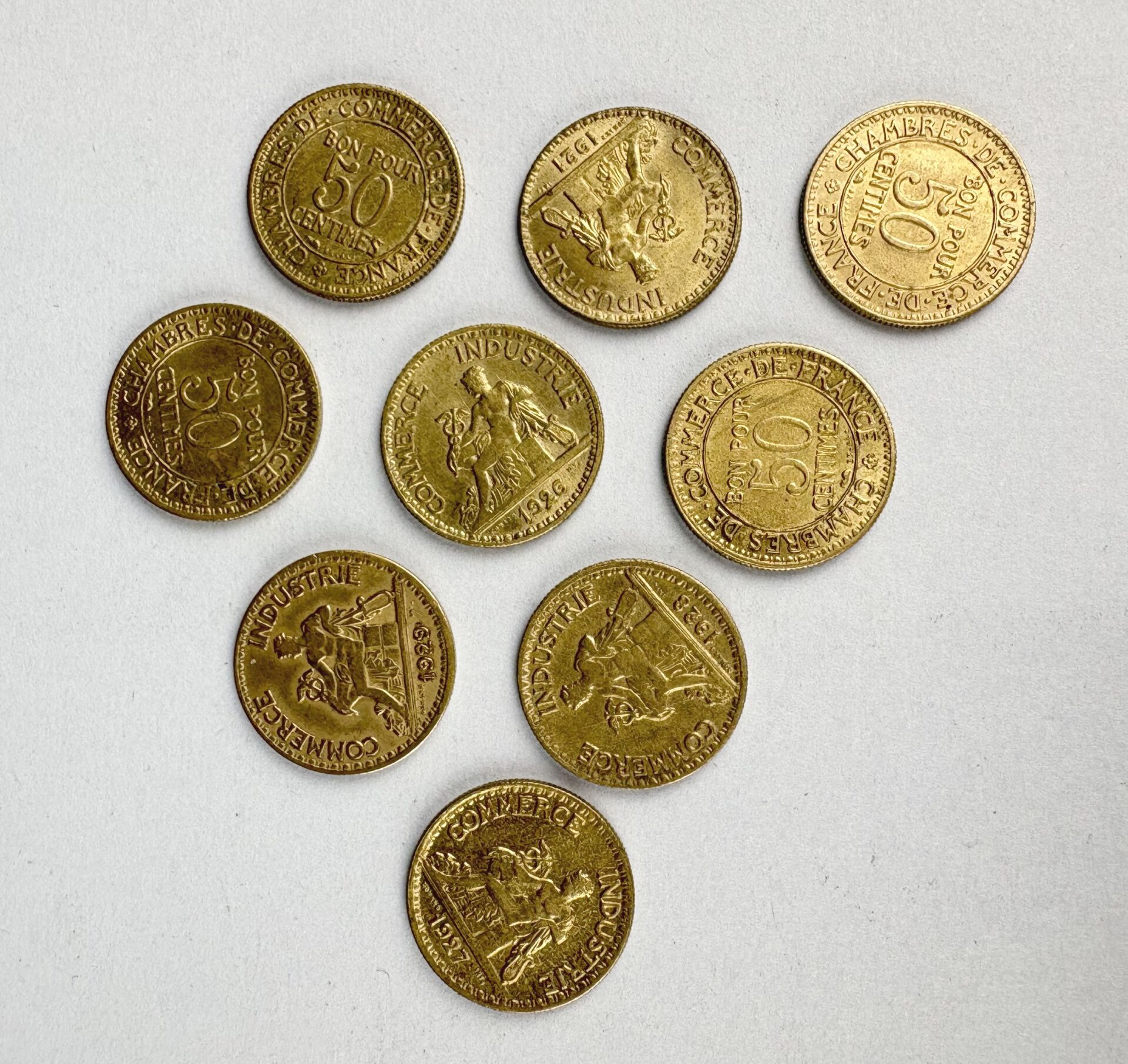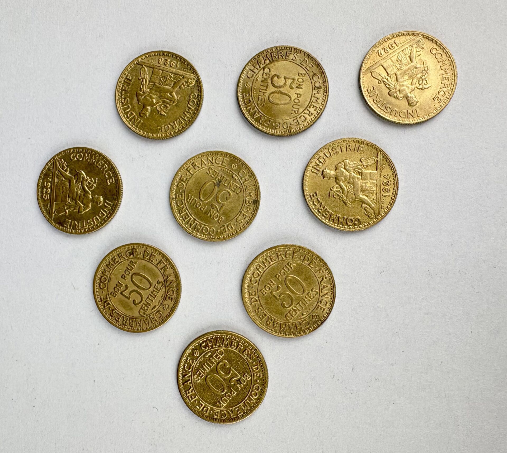 47 ESTIMATION: 20 / 40 € MONNAIES FRANCAISES MODERNES – 50 centimes Chambre de Commerce série complète 1921 à 1929 quelques unes SUP A examiner