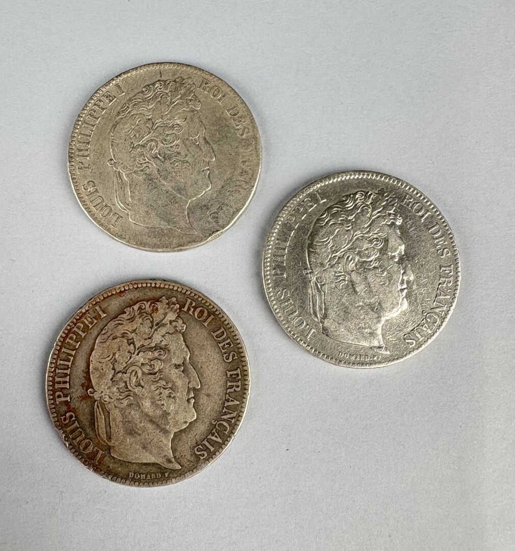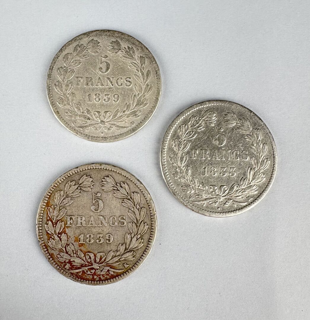 MONNAIES FRANCAISES MODERNES – Louis Philippe lot de trois écus 5 Francs argent 1833 H, 1839 K, 1839 D