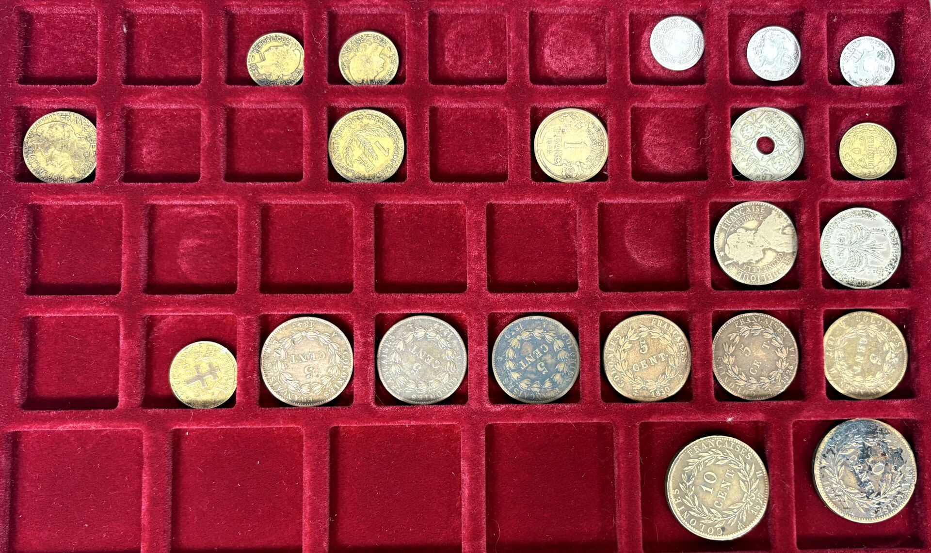COLONIES GENERALES – Collection de 21 monnaies argent et bronze