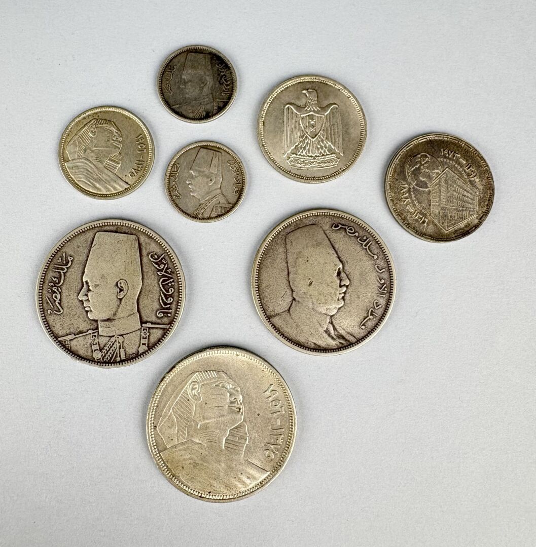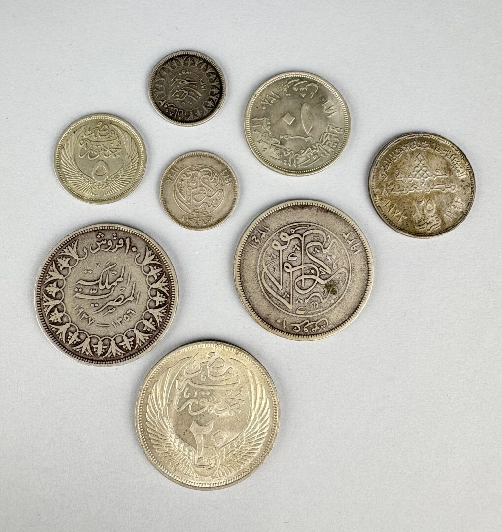 93 ESTIMATION: 50 / 90 € MOYEN ORIENT – Égypte, Syrie : Lot de 8 monnaies argent Poids : 68 g A examiner
