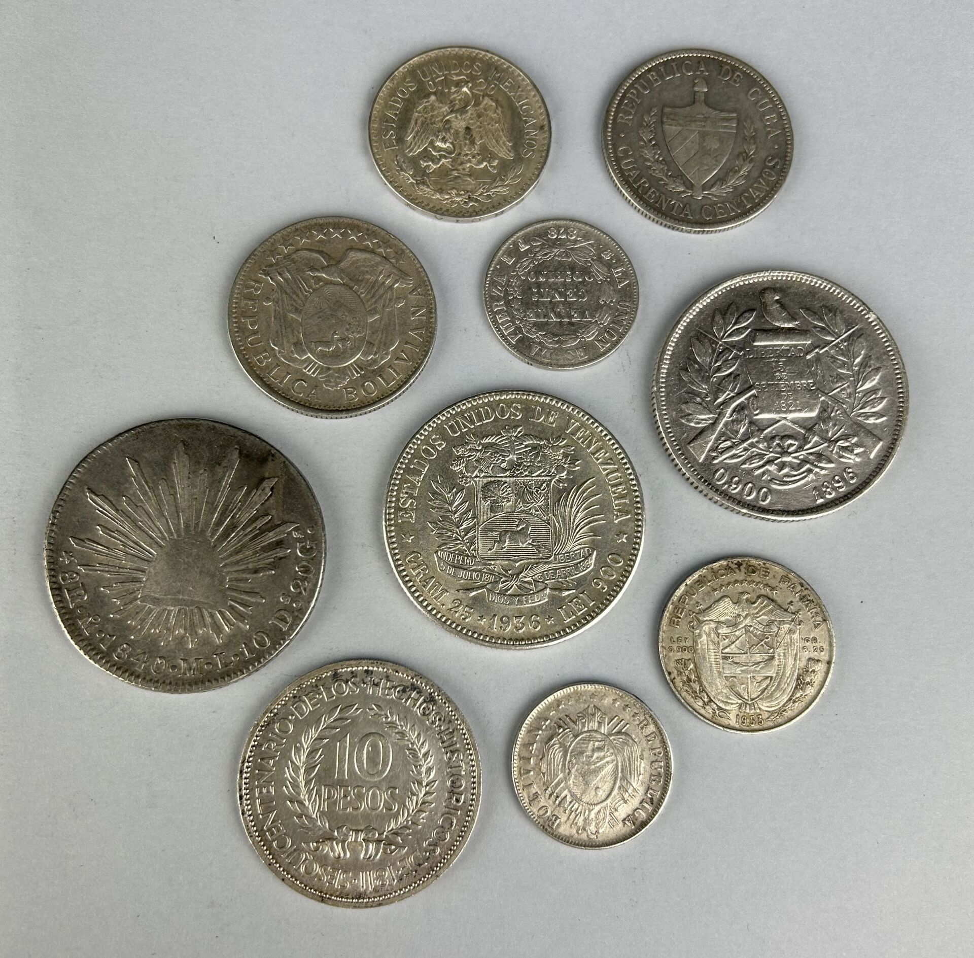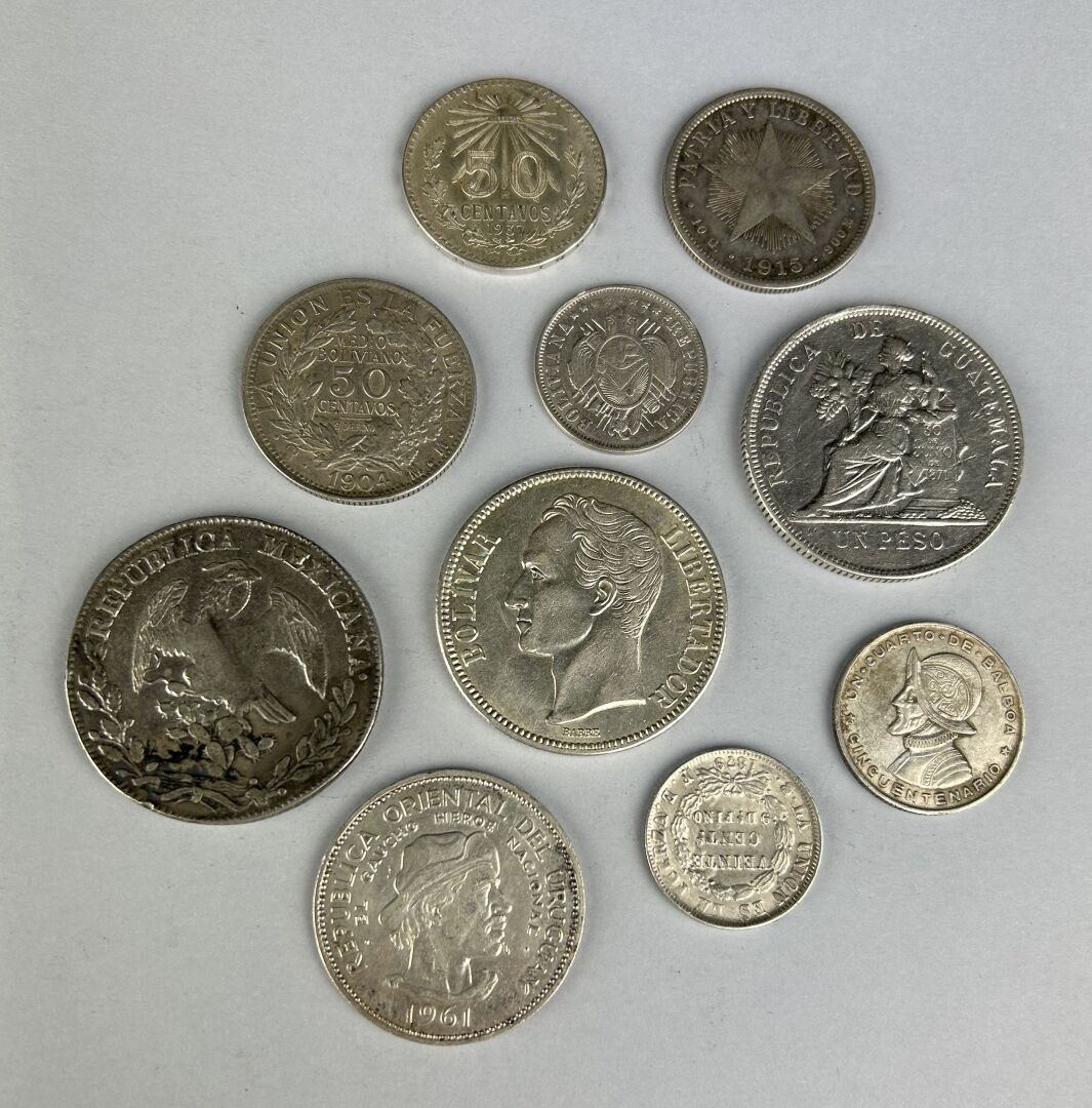 AMERIQUE DU SUD – Lot de 10 monnaies argent