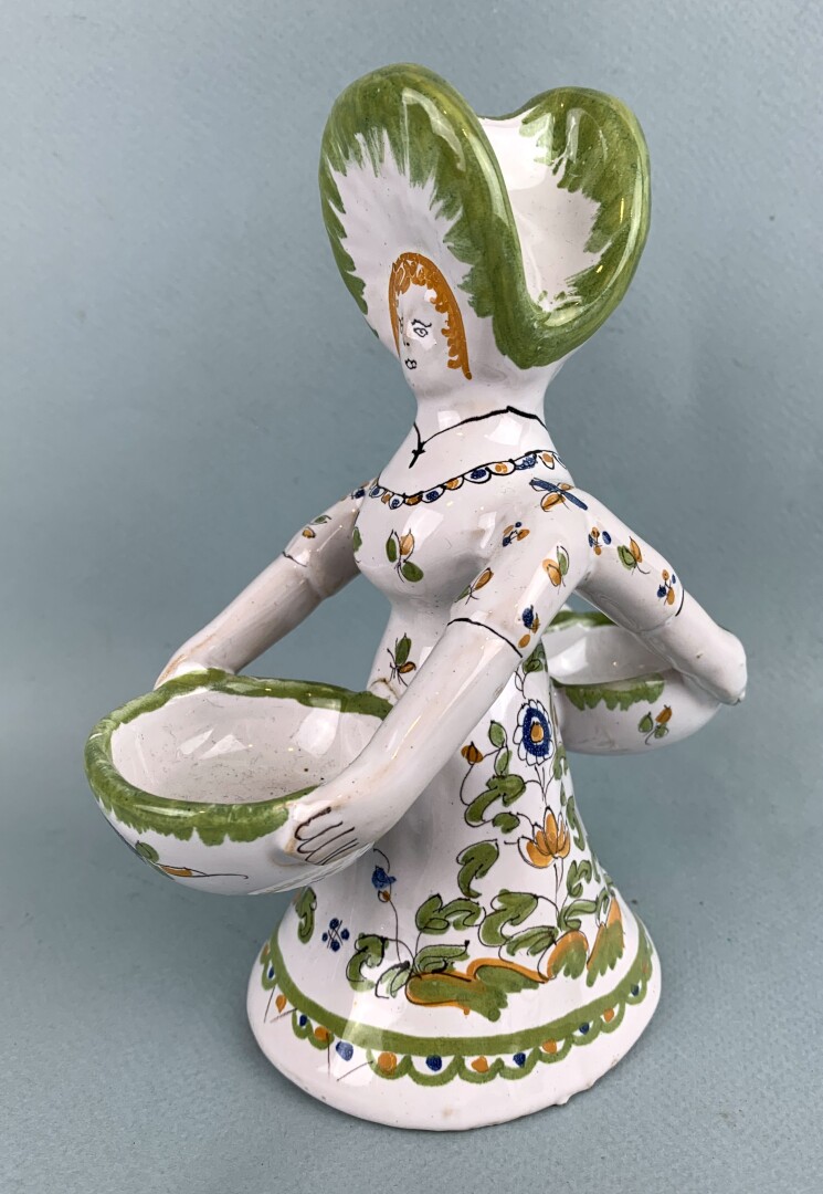 203 ESTIMATION: 10 / 20 € MARTRES TOLOSANE Salière double en faïence émaillée figurant deux personnages, Travail XX°, H : 19 cm