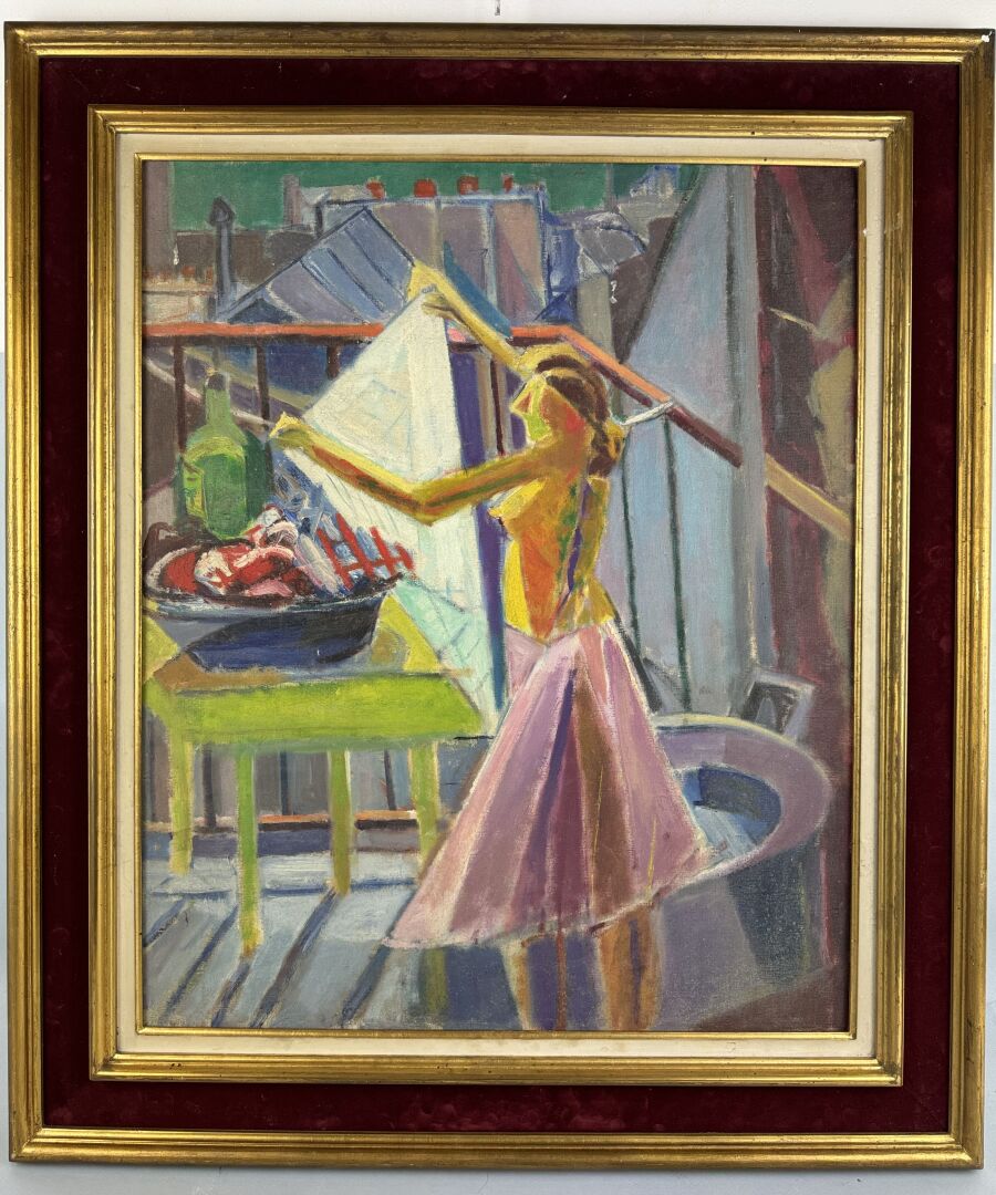 175 ESTIMATION: 200 / 300 € Simon VANIER (1903-1958) Femme sur les toits Huile sur toile signée en bas à droite, contresignée au dos 73 x 60 cm