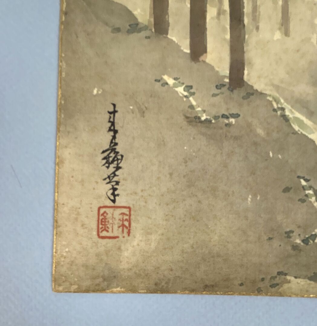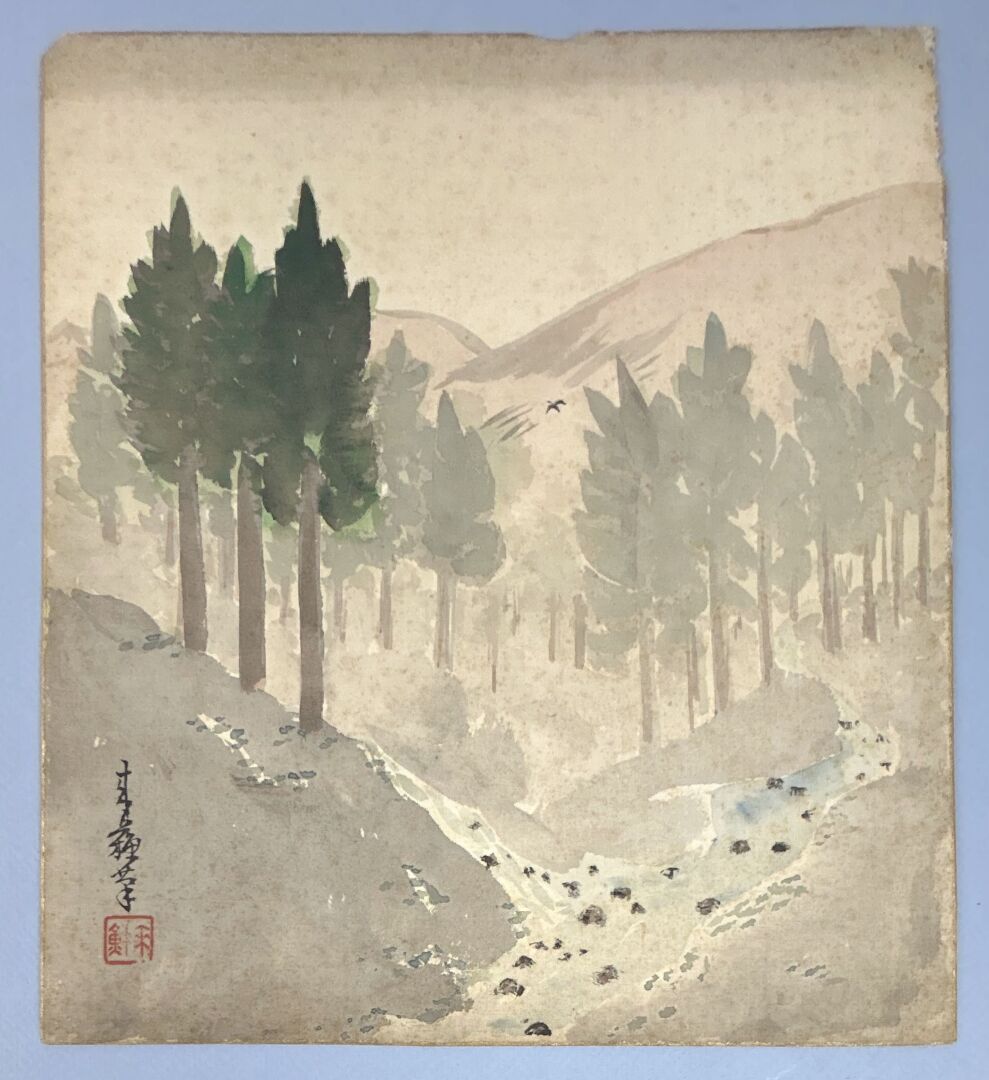Aquarelle sur soie contrecollée sur carton,