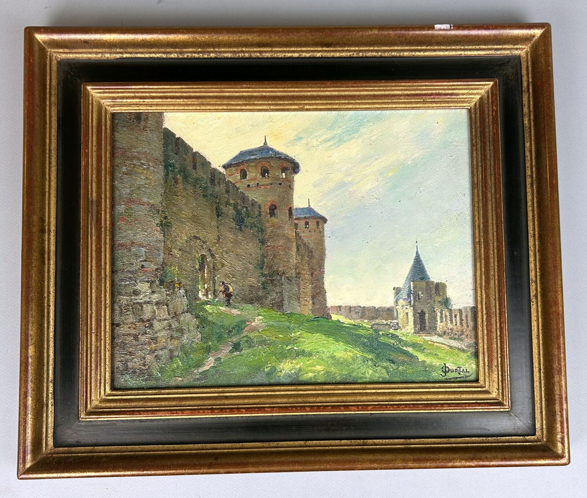 334 ESTIMATION: 100 / 150 € Jacques OURTAL (1868-1962) La Cité de Carcassonne Huile sur panneau signée en bas à gauche 27 x 35 cm