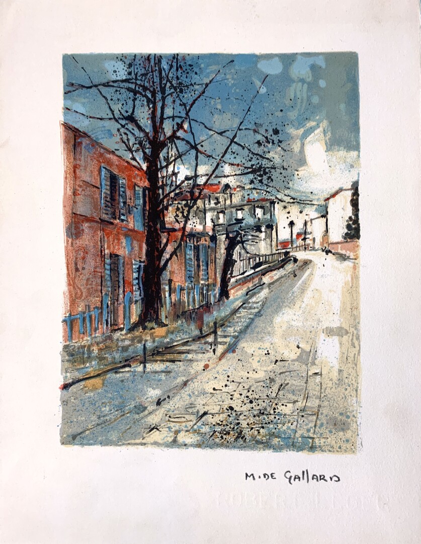 – M. de GALLARD, Vue de ville, Lithographie couleur signée en bas à droite – 35.7 x 28 cm