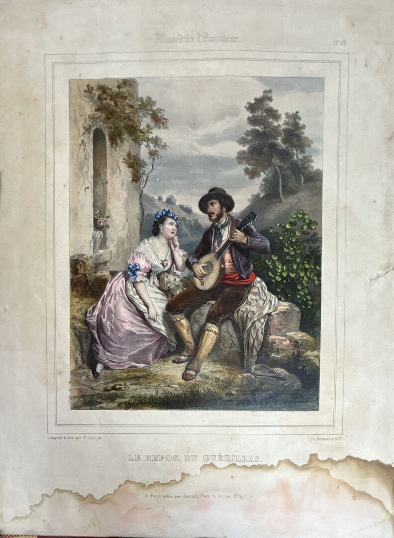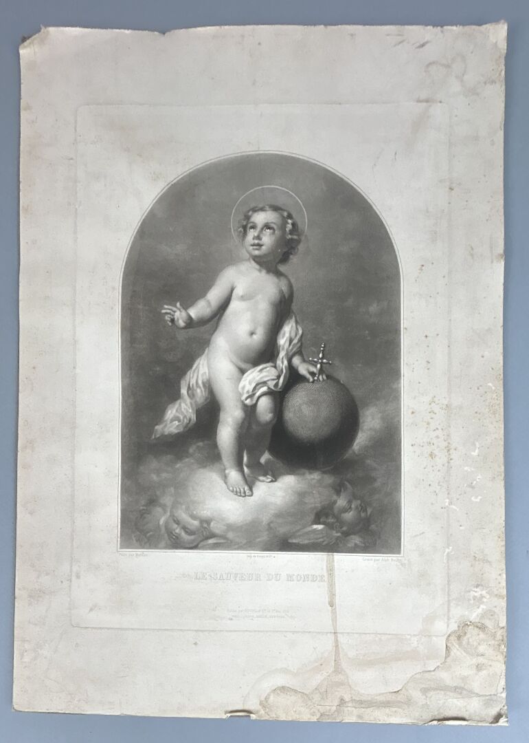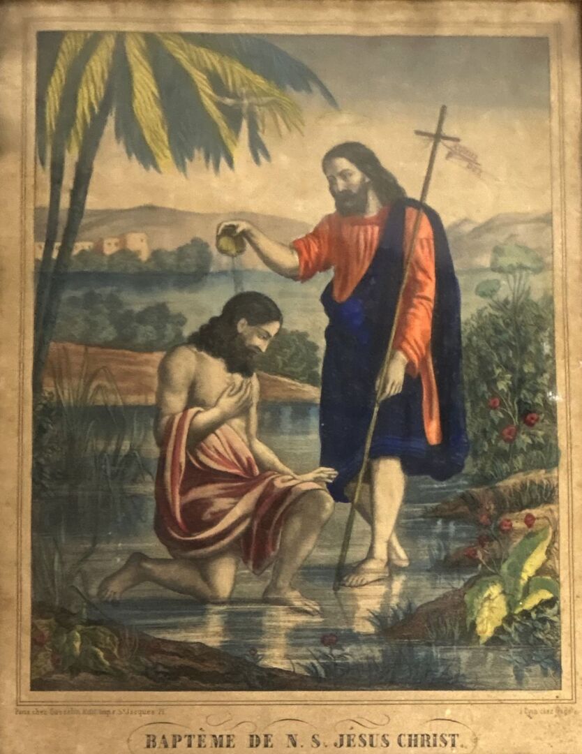Suite de 7 gravures, certaines encadrées dont Le baptême de Jésus Christ, Rendez-vous donné par Pyrame à Thisbé, Le sauveur du monde, Le repos du Guérillas, La promenade, Vue de Montmartre et portrait du Comte de Chambord