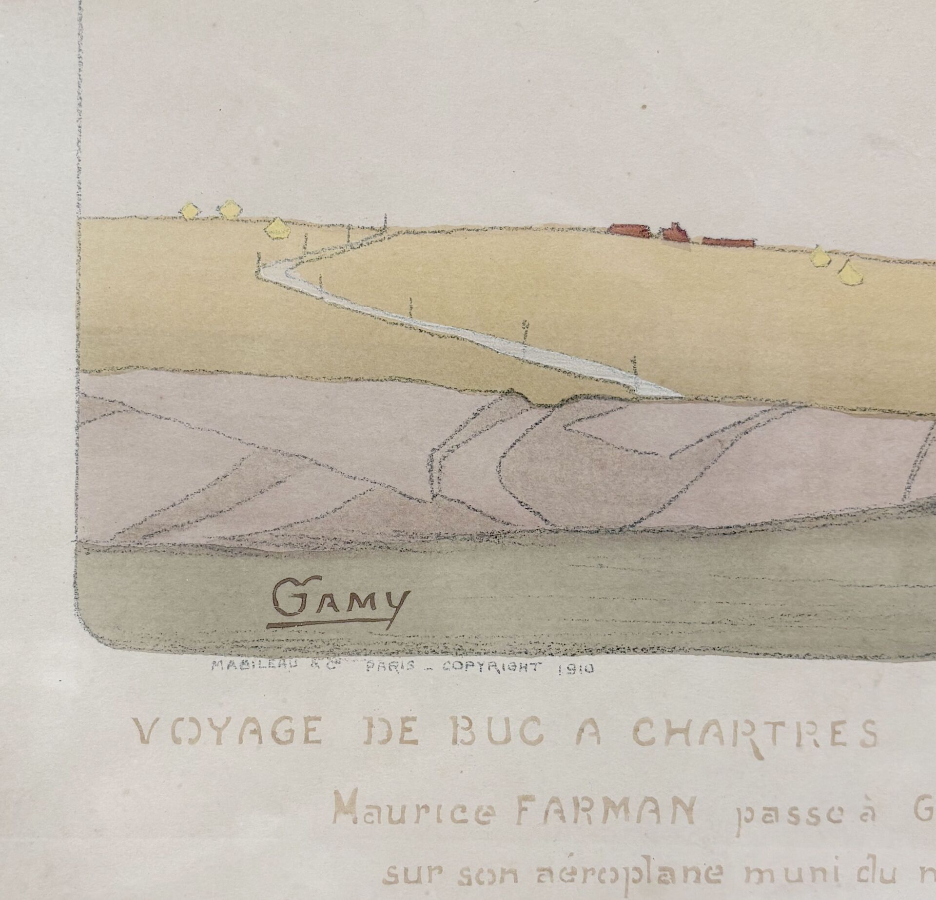 Lithographie en couleur rehaussée à la gouache, titrée et signée en bas à gauche. Paris, Mabileau & Cie, 1910.